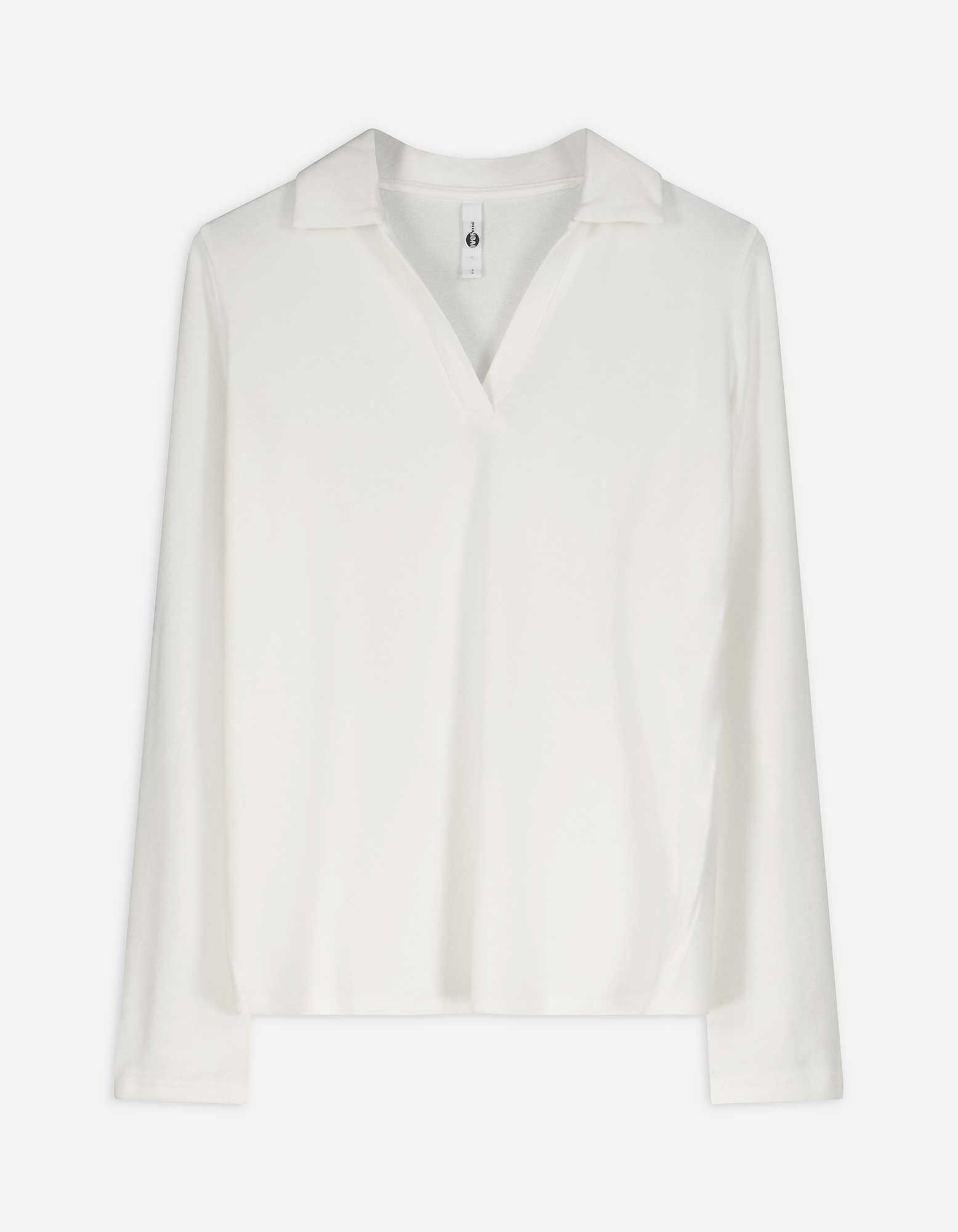 Pololangarmshirt - Polokragen - weiß