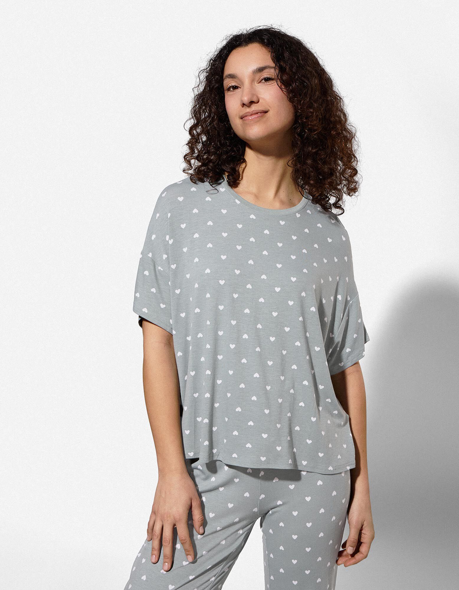 Pyjama Set aus Shirt und Hose - Viskose - türkis