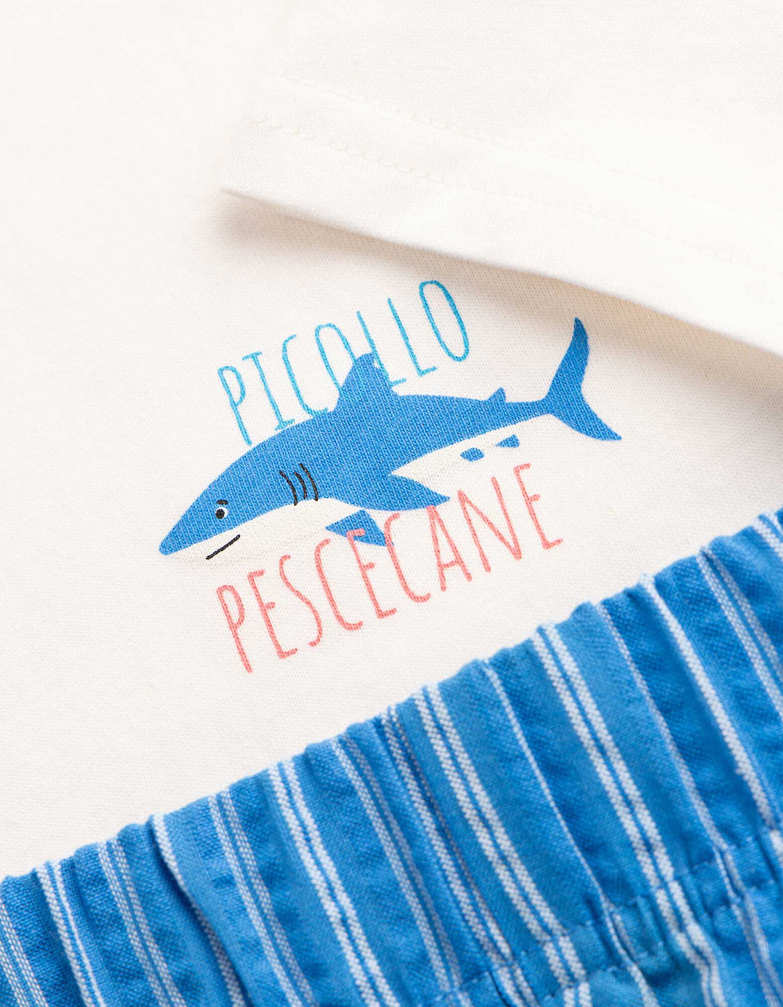 Pyjama Set aus Shirt und Shorts - Streifen - weiß