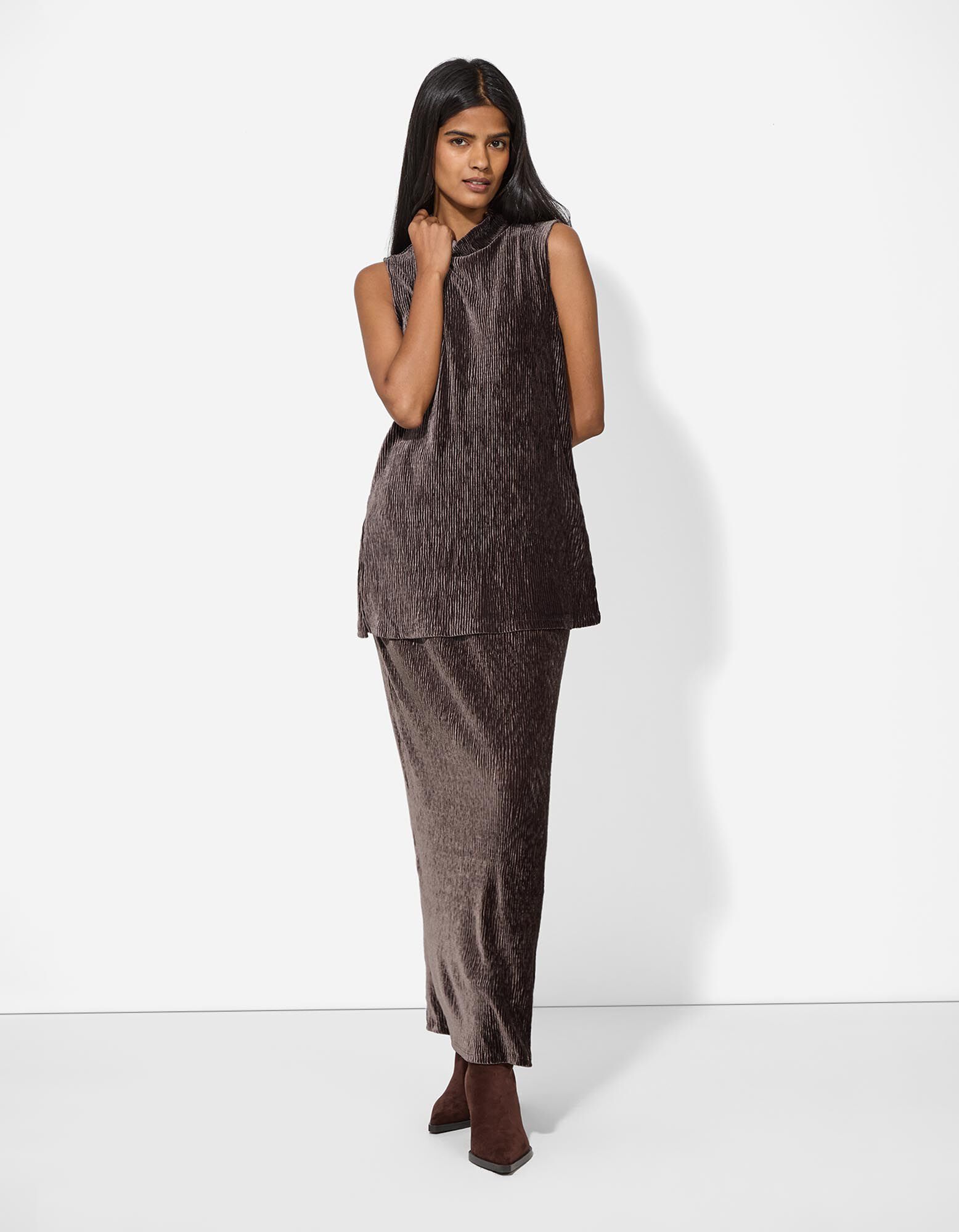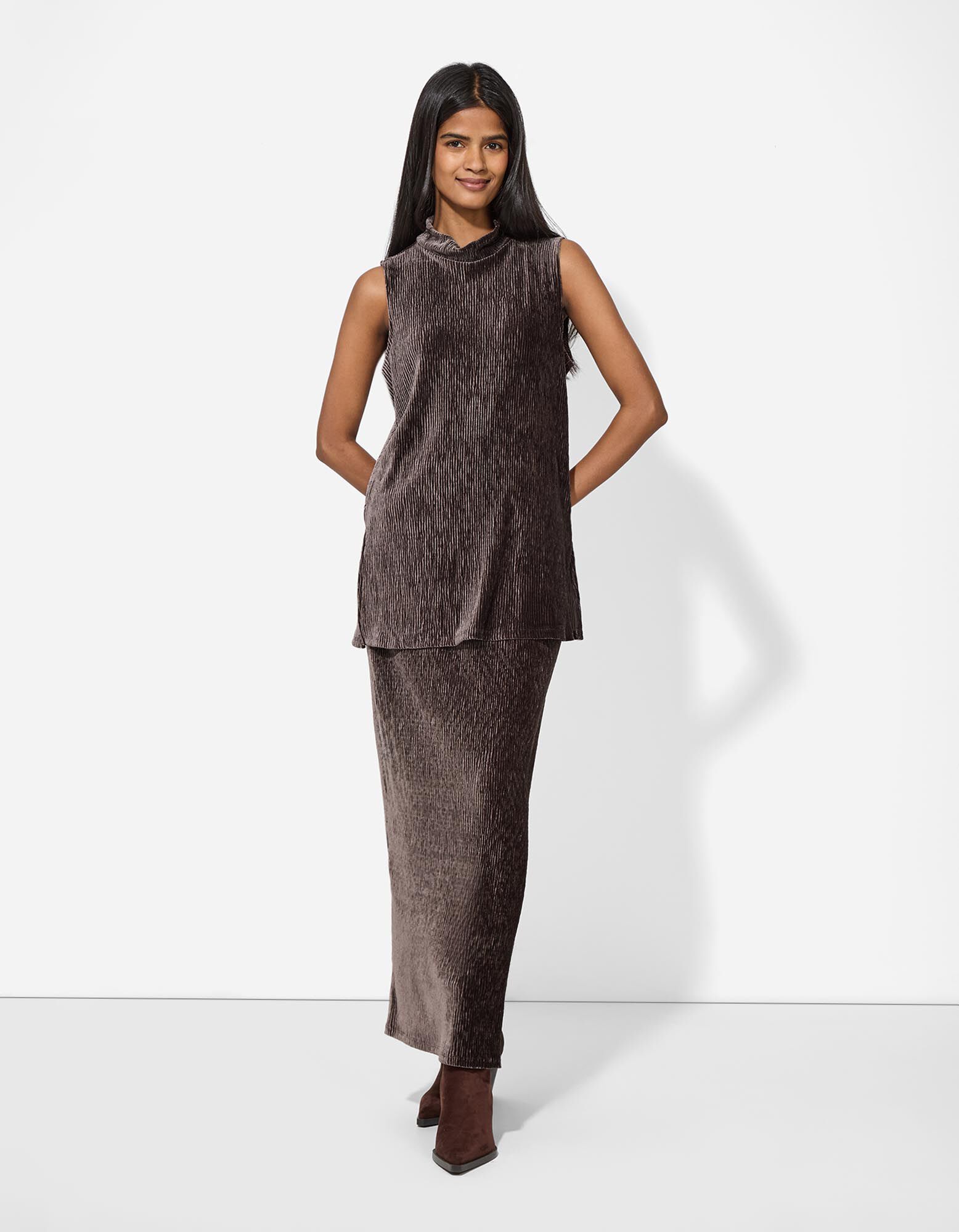Rock in A-Linie - Samt - dunkelbraun