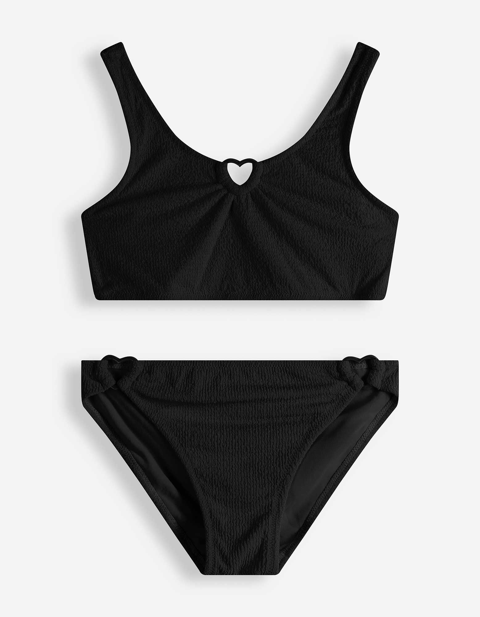 Set aus Bikinitop und Bikinislip - Rippenstruktur - schwarz