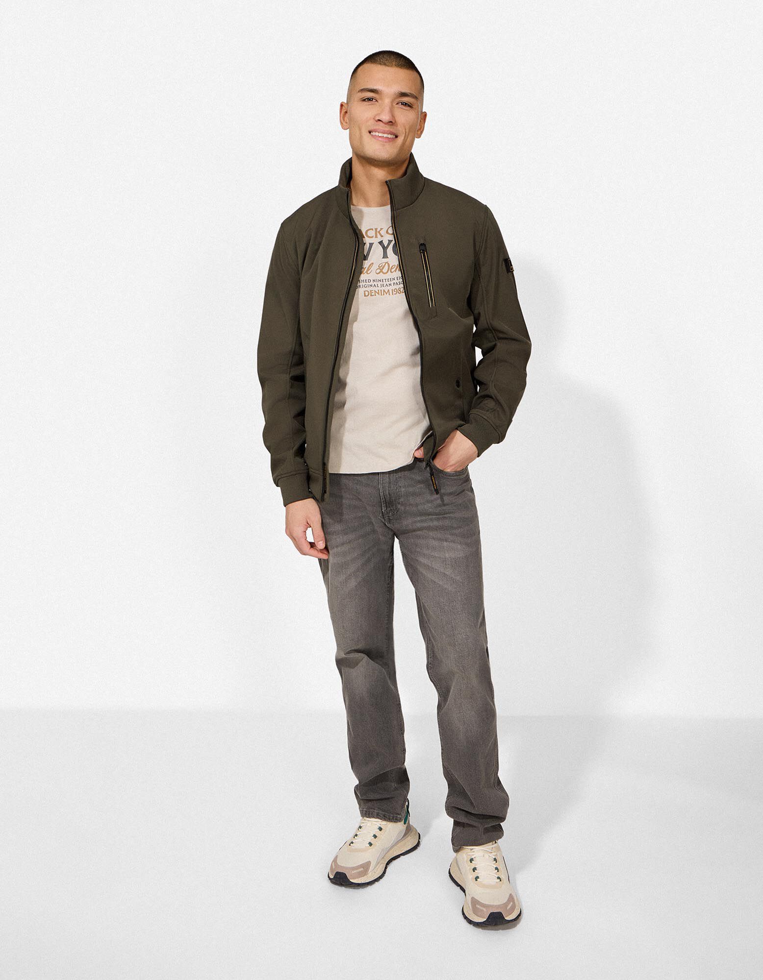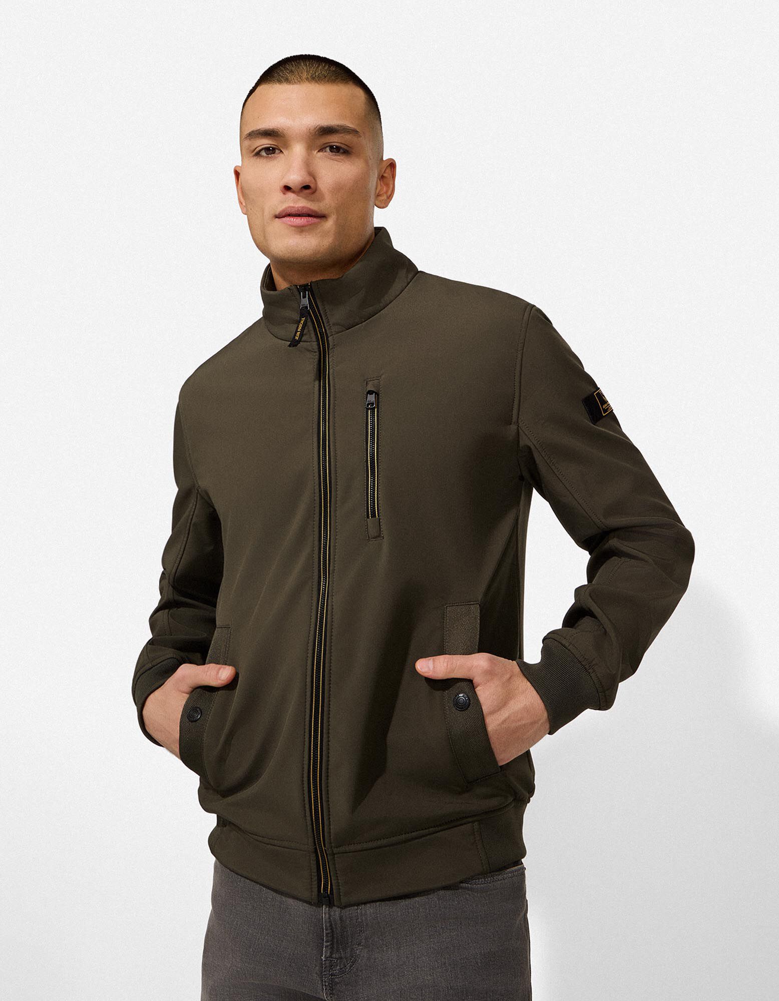 Softshelljacke - Stehkragen - dunkelgrün
