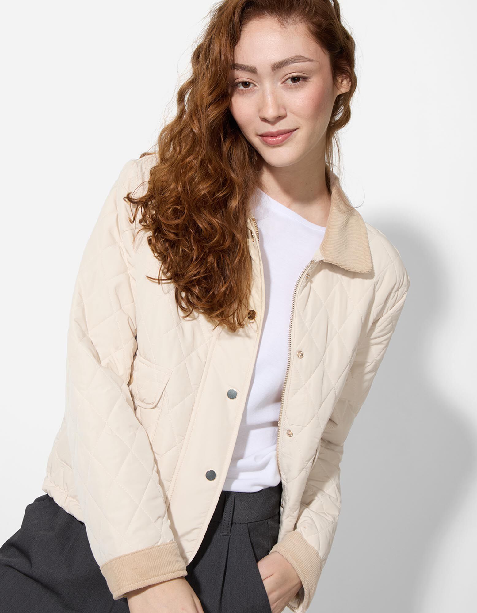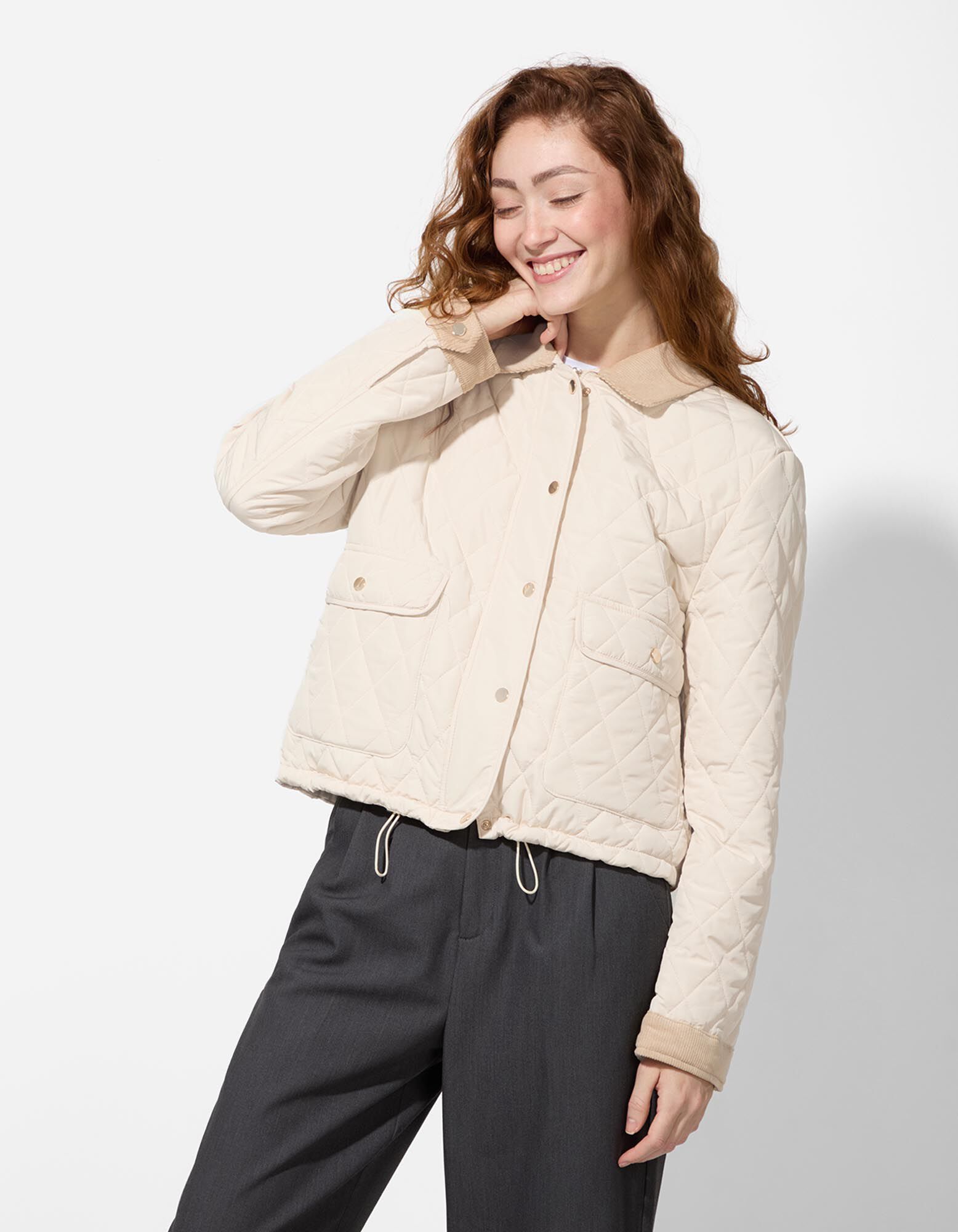 Steppjacke - Tunnelzug am Saum - weiß