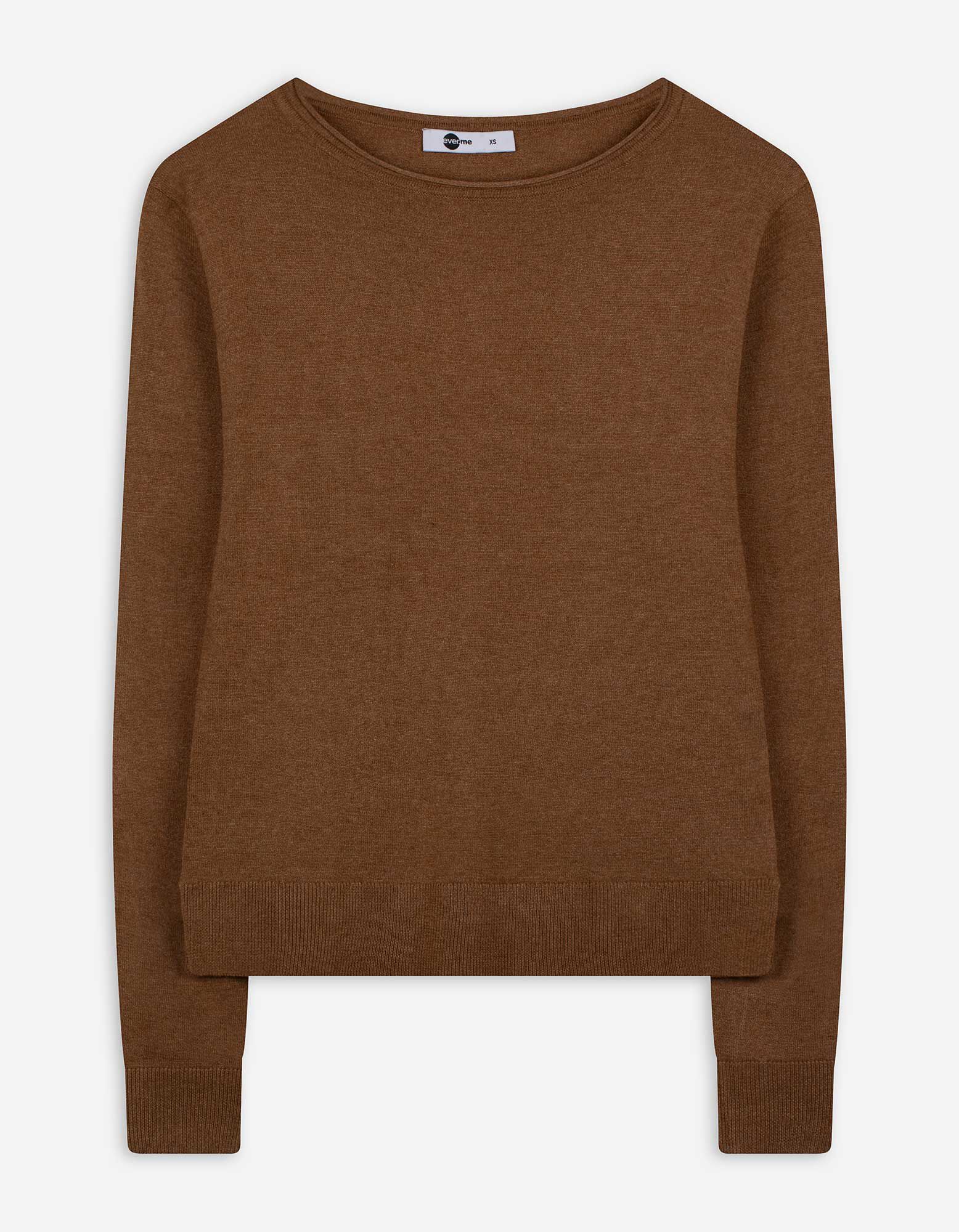 Strickpullover - Rundhals-Ausschnitt - hellbraun