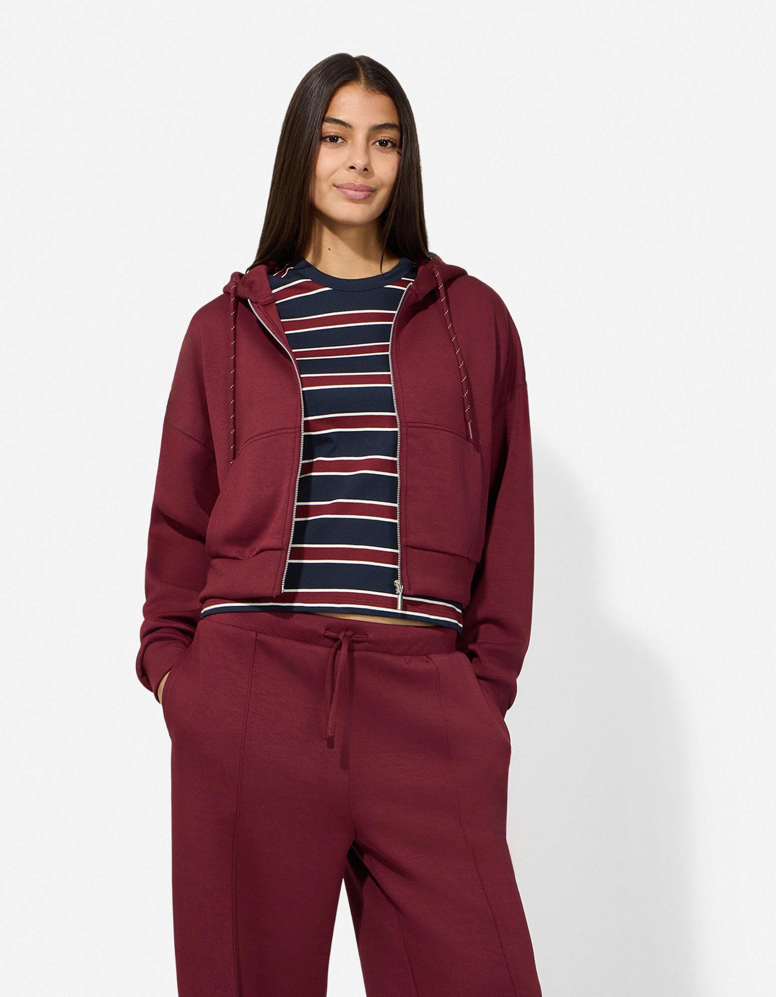 Sweatjacke - Cropped - dunkelrot