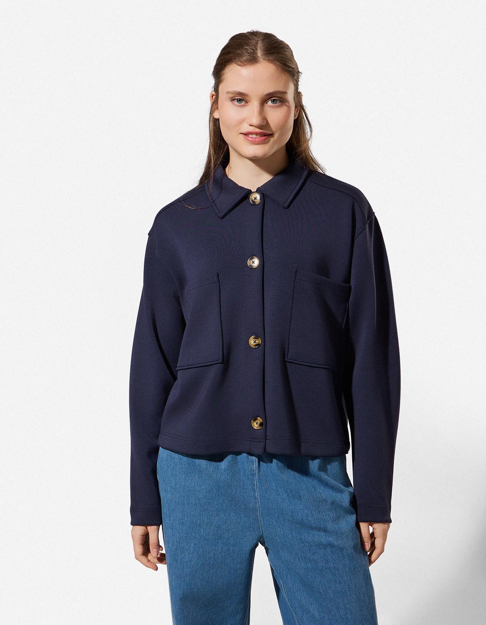 Sweatjacke - Knopfleiste - dunkelblau