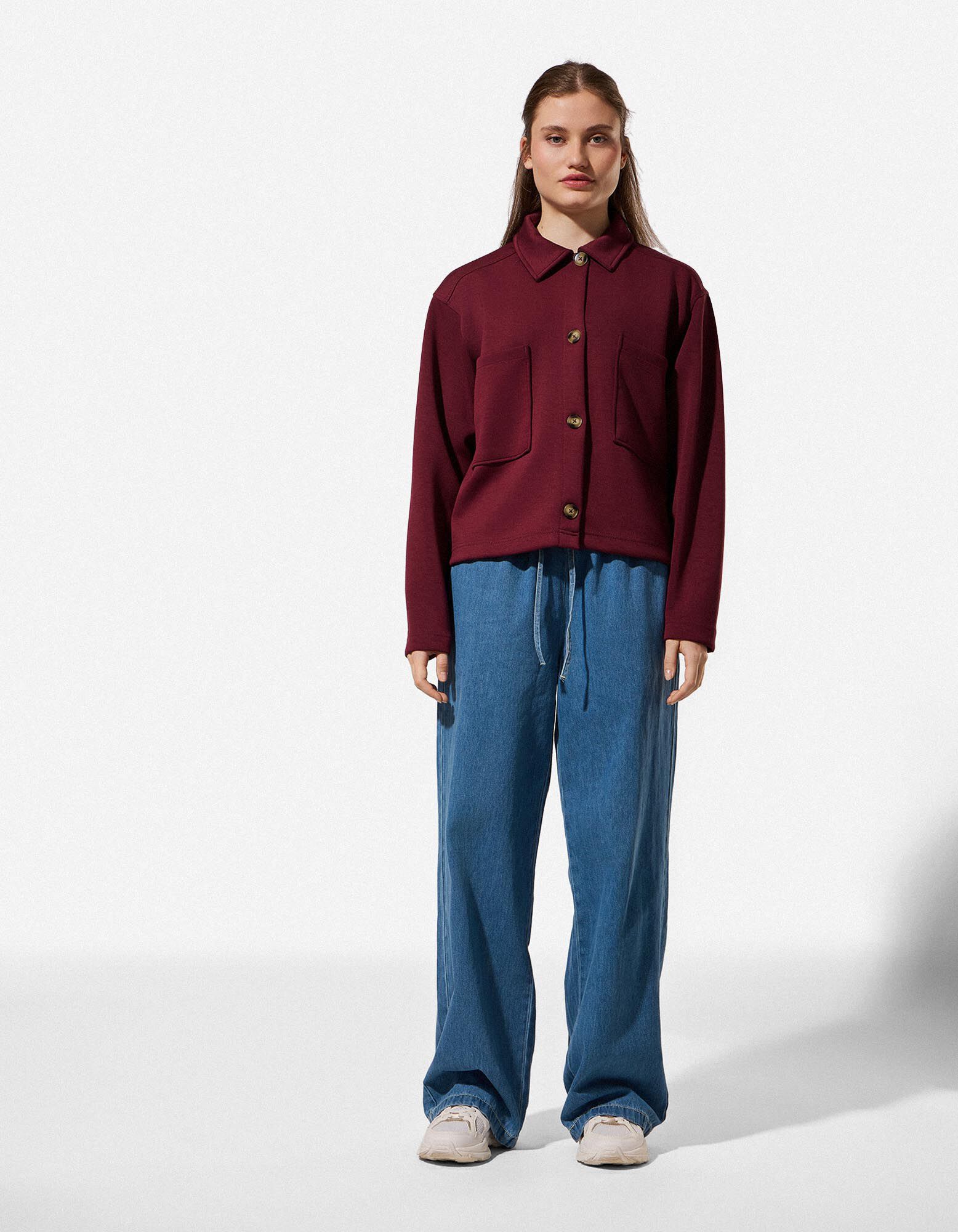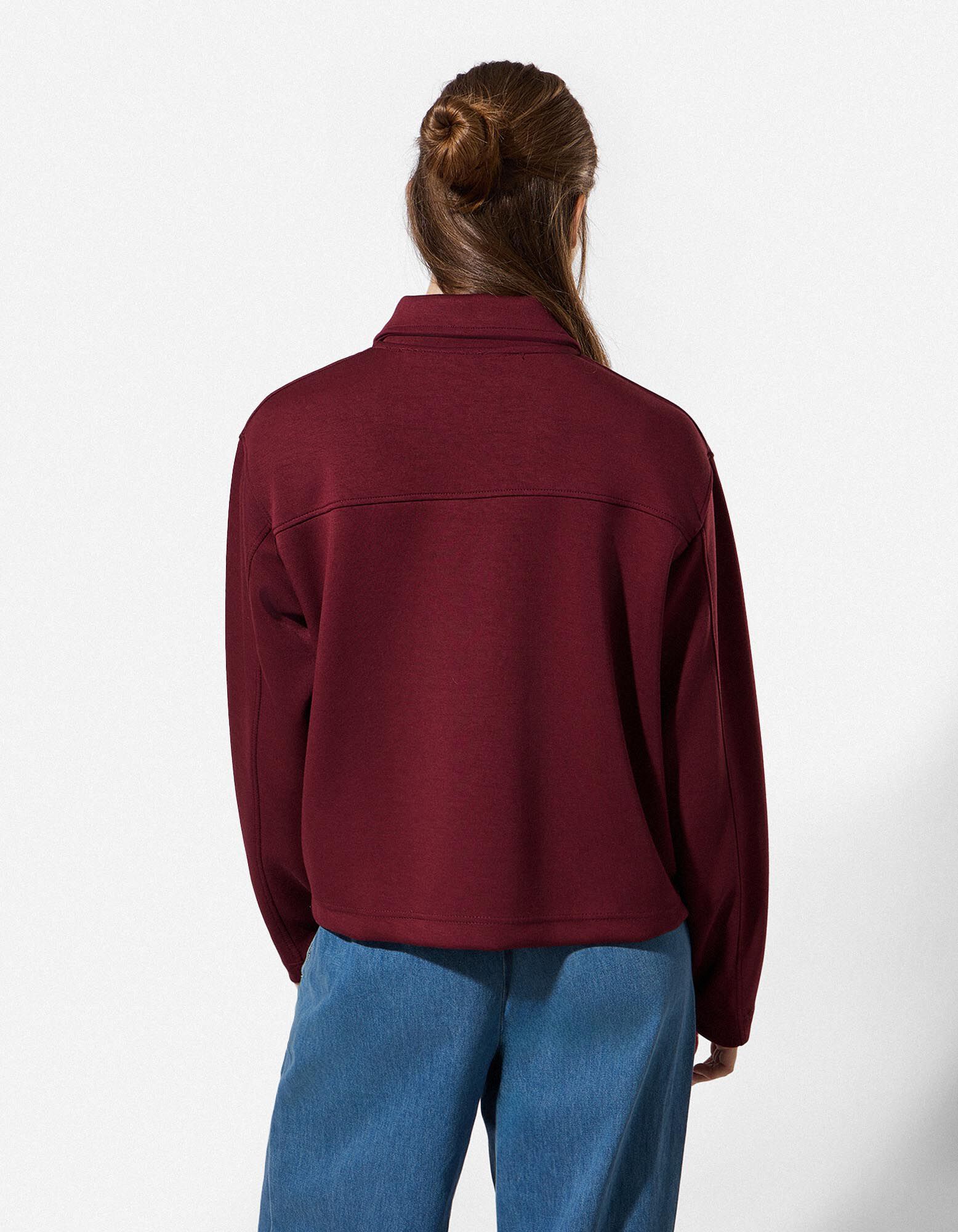 Sweatjacke - Knopfleiste - dunkelrot