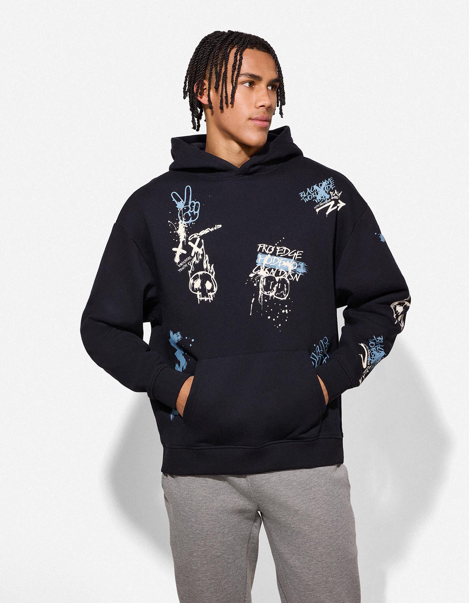 Details: Kangurutasche, Kapuze, Print