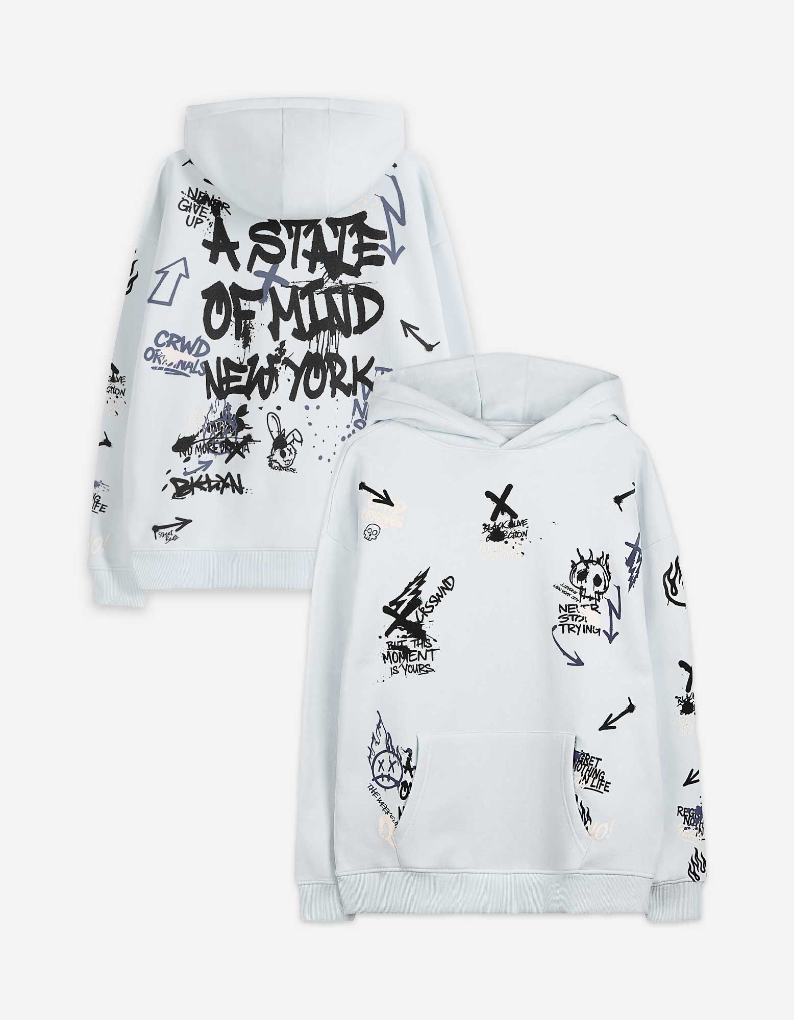 • Details: Kangurutasche, Kapuze, Print