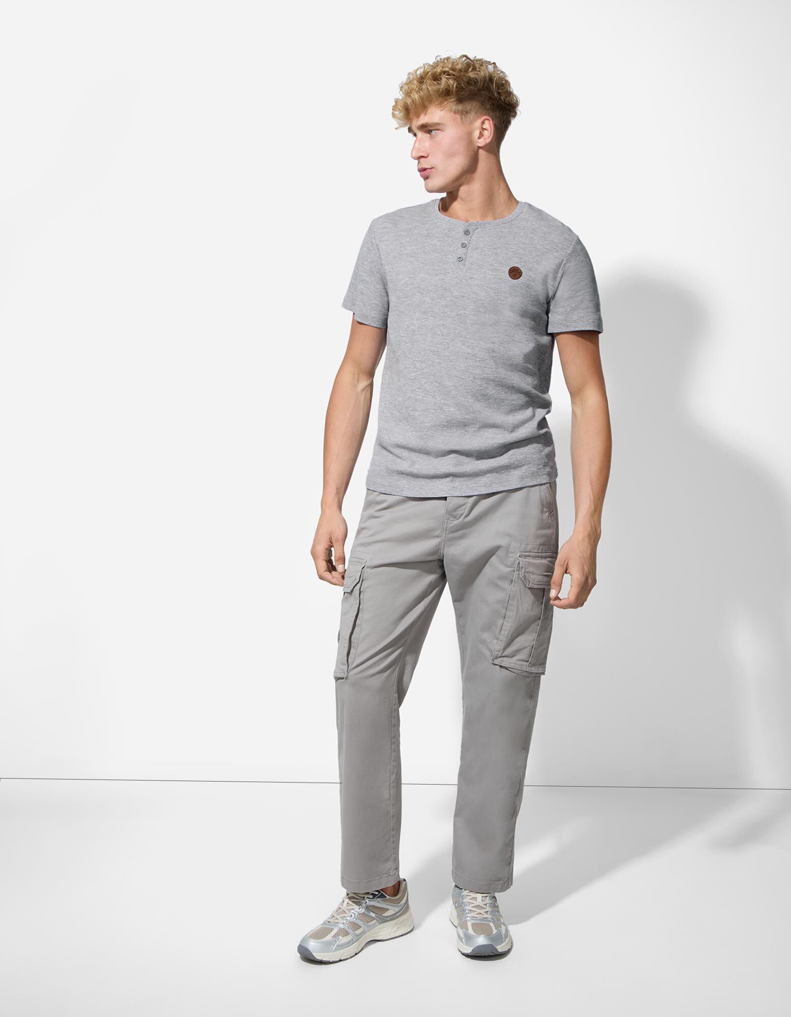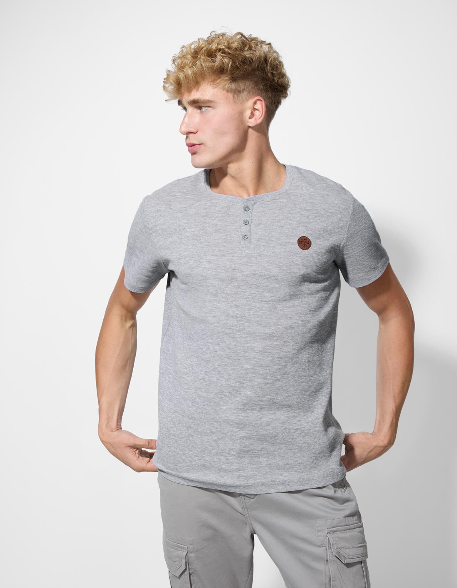 T-Shirt - Knopfleiste - grau