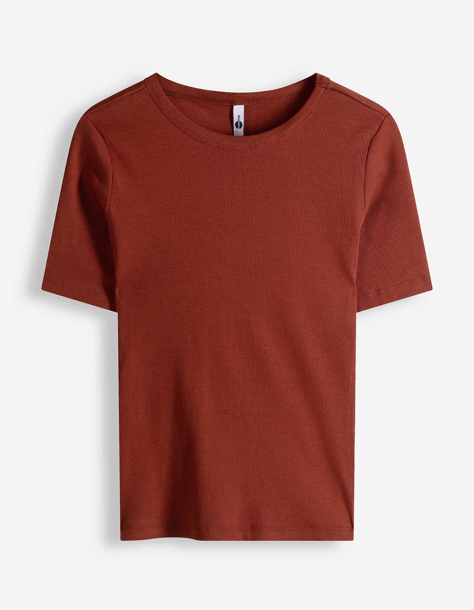 T-Shirt - Rippenstruktur - braun