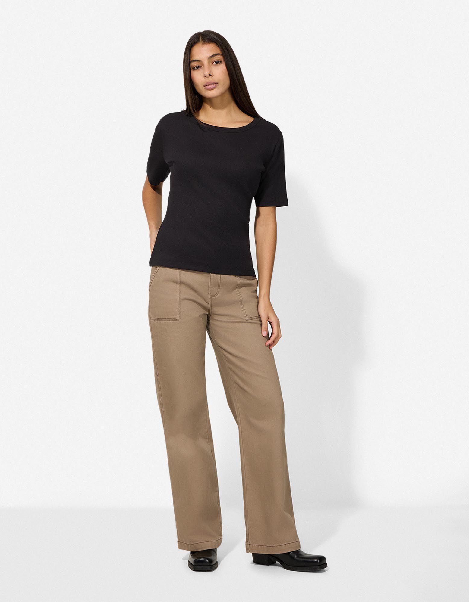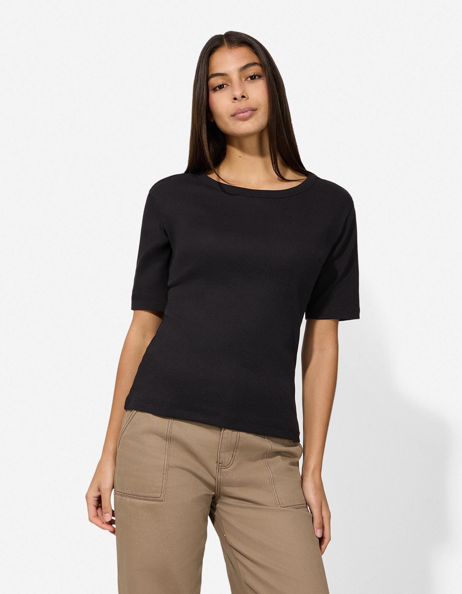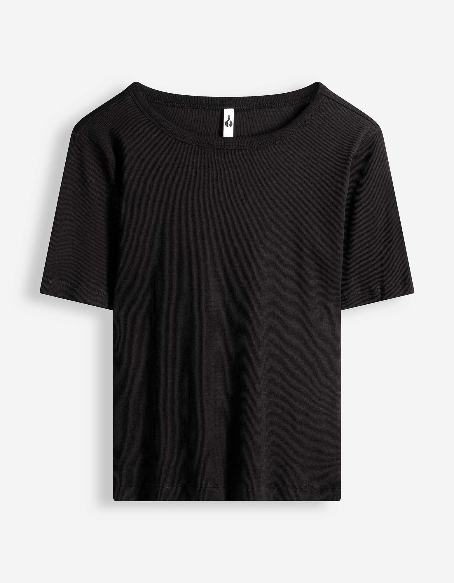 T-Shirt - Rippenstruktur - schwarz