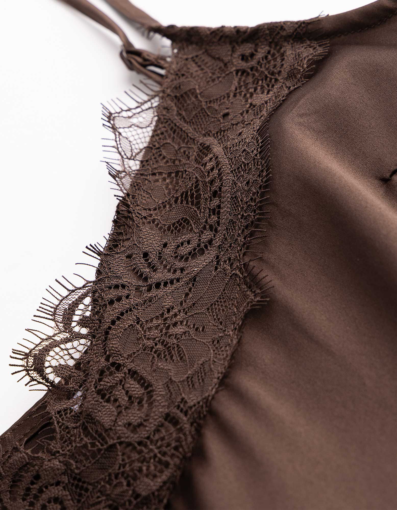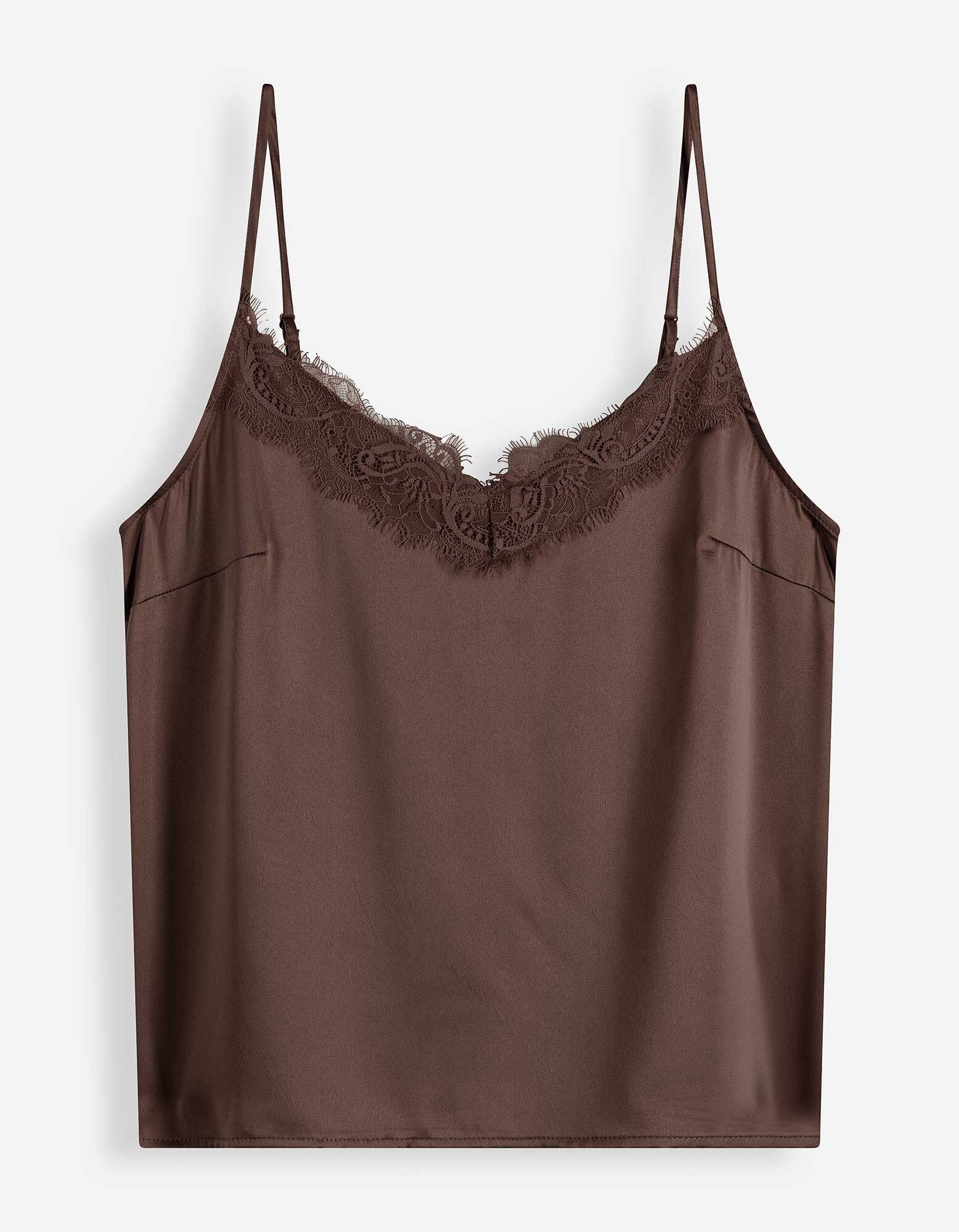 Top - Spitzenbesatz - dunkelbraun