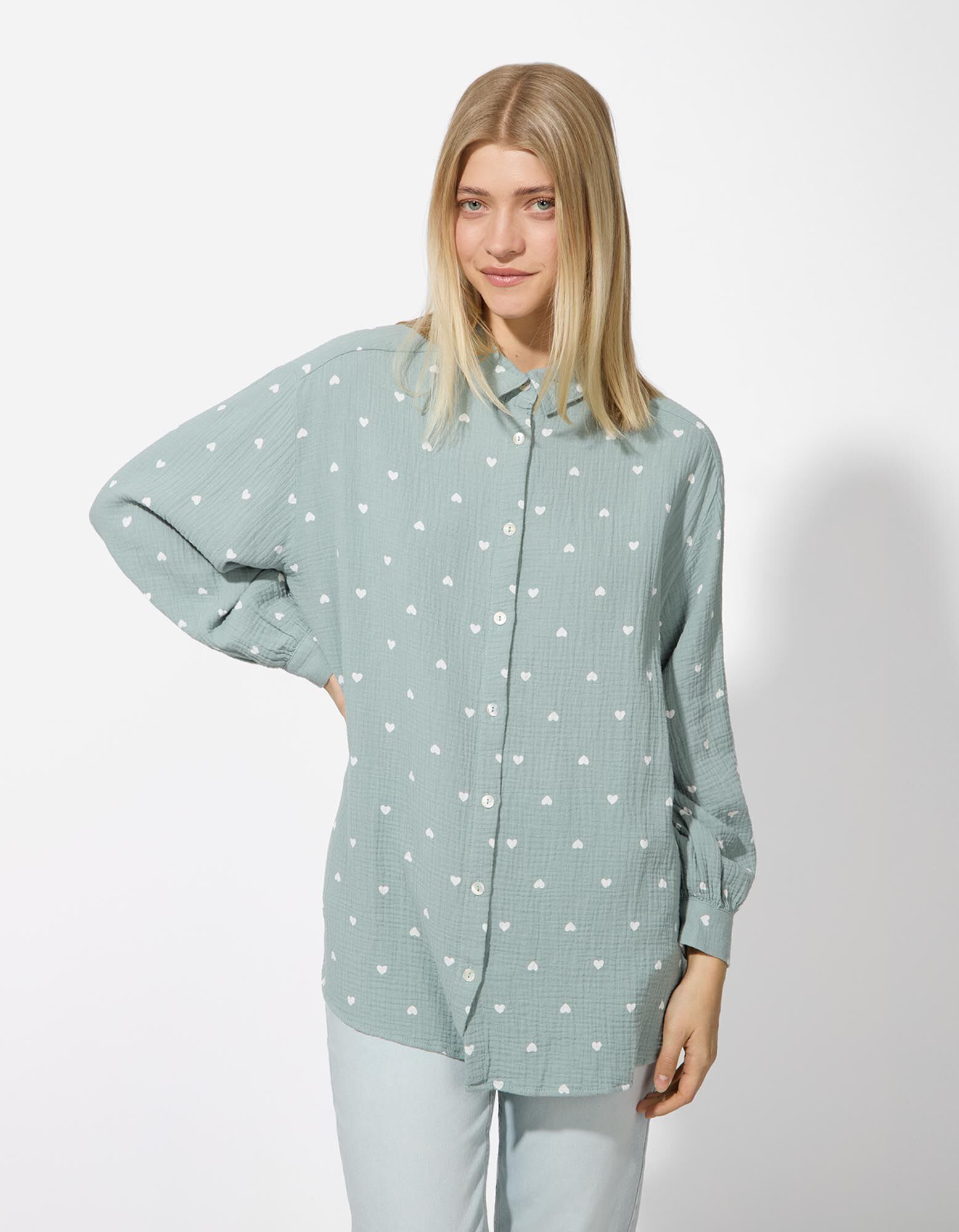 Pikk pluus - musliinkangas - roheline
