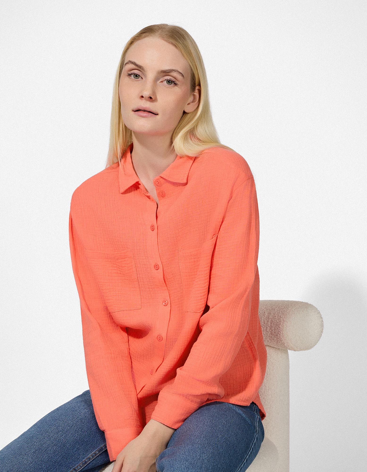 Blouse - Unicolore - Rouge clair