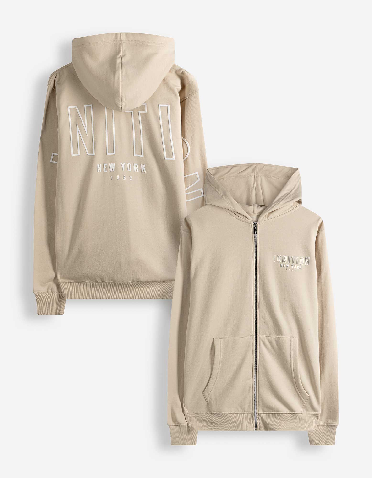 Détails: Capuche, Dos imprimé, Bords côtelés