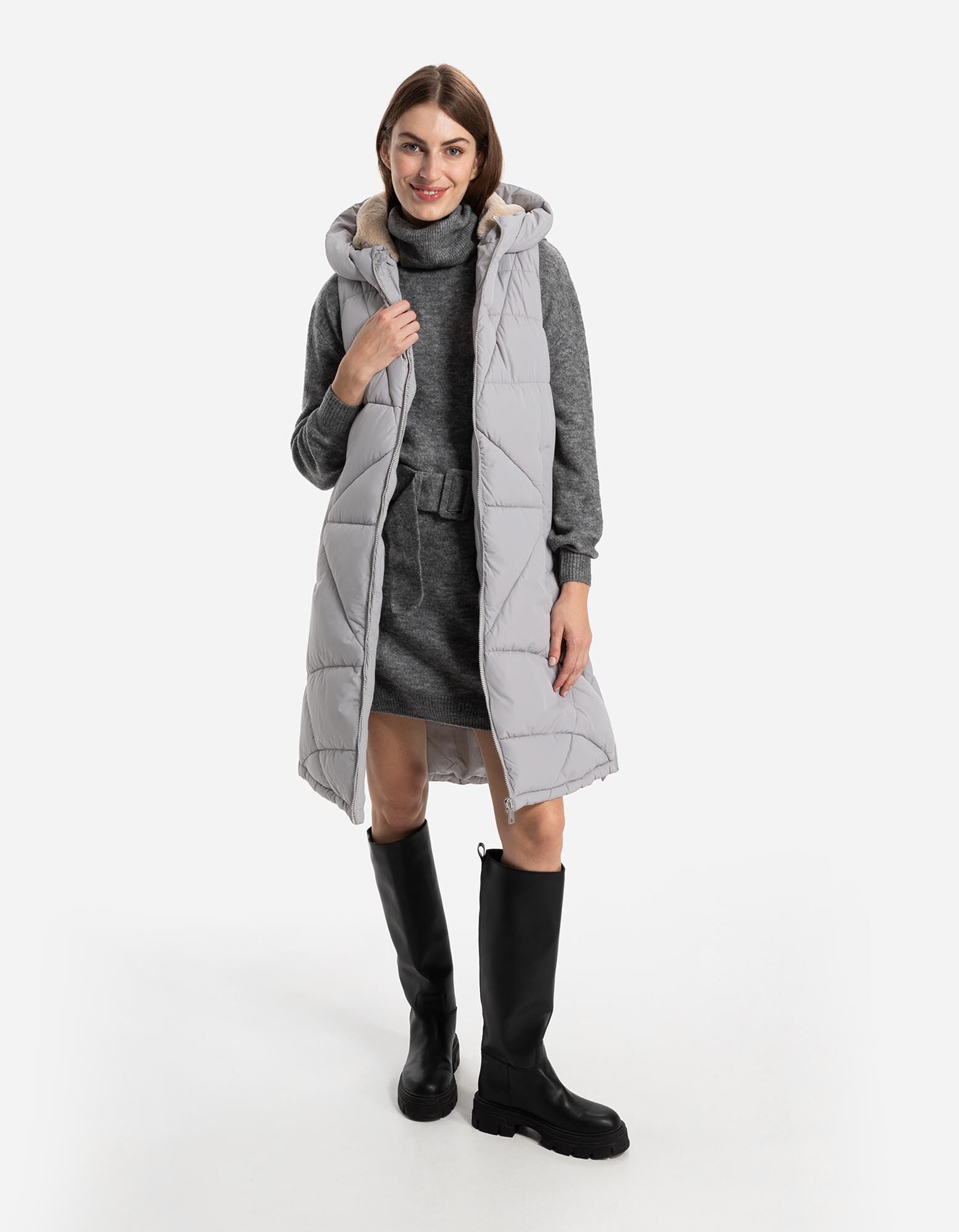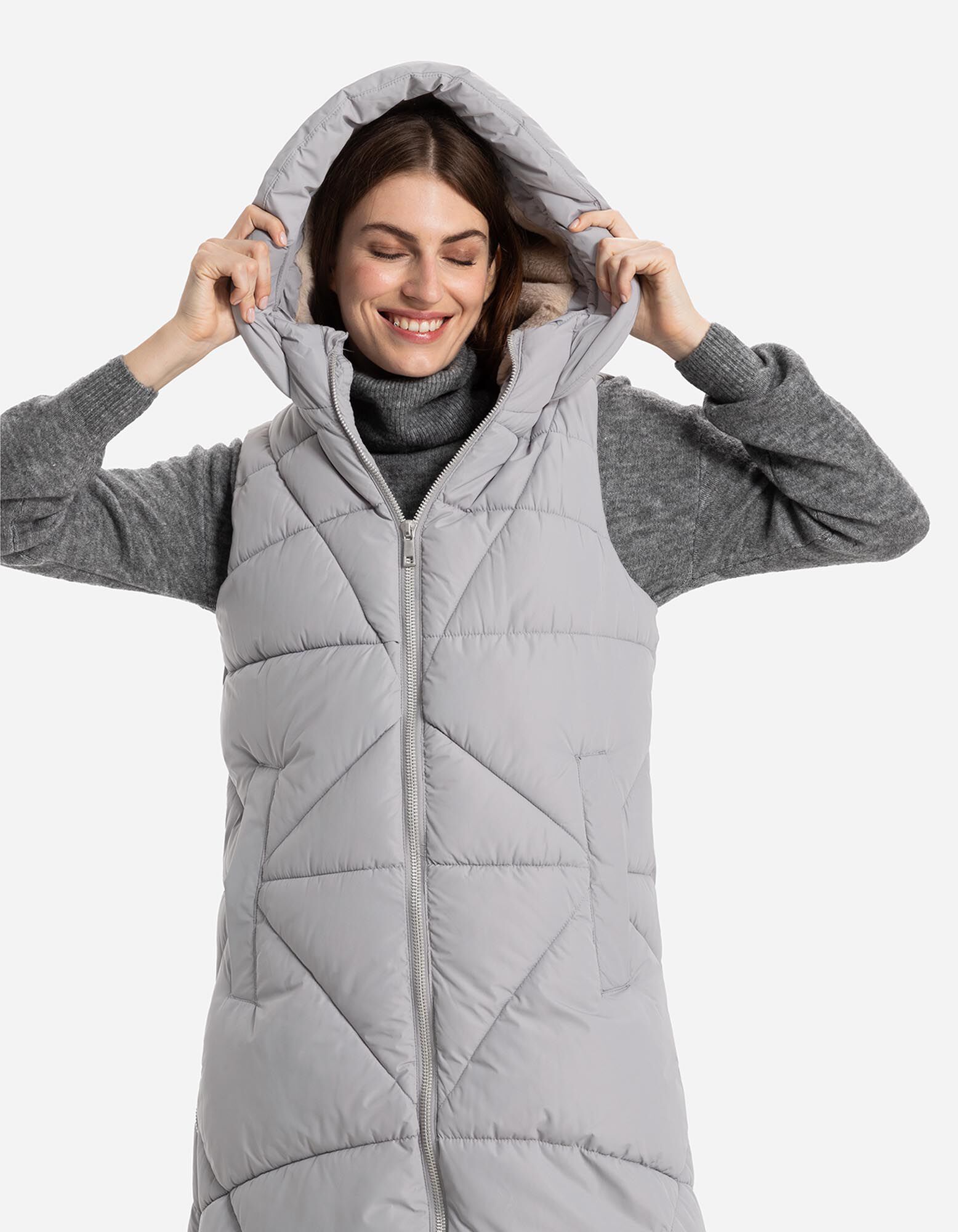 dugi prsluk - Umjetno krzno - siva