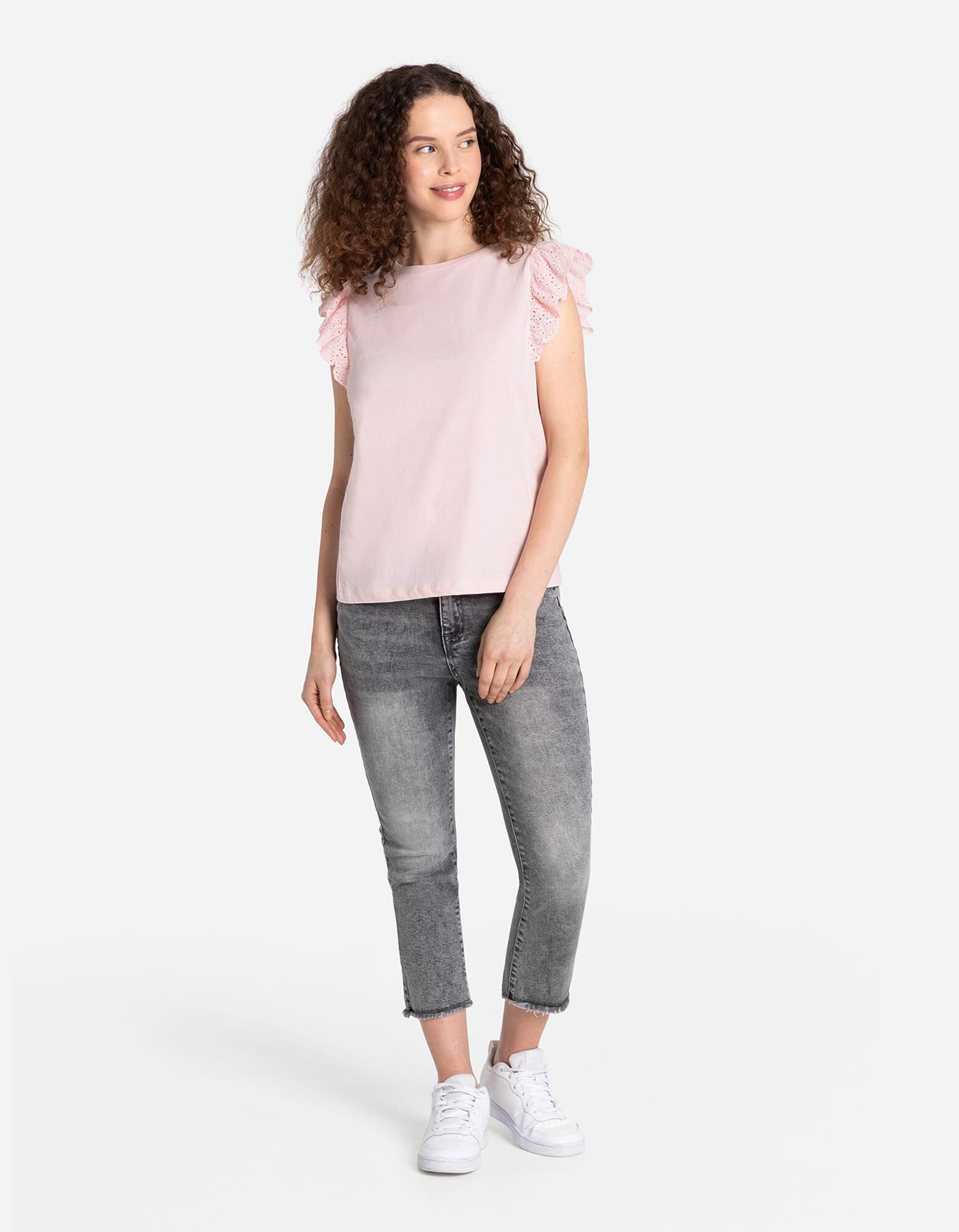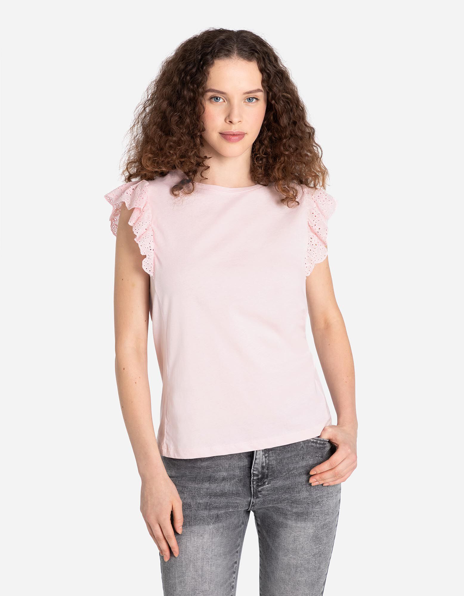 Majica - Rukavi s volanima - ruzicasta
