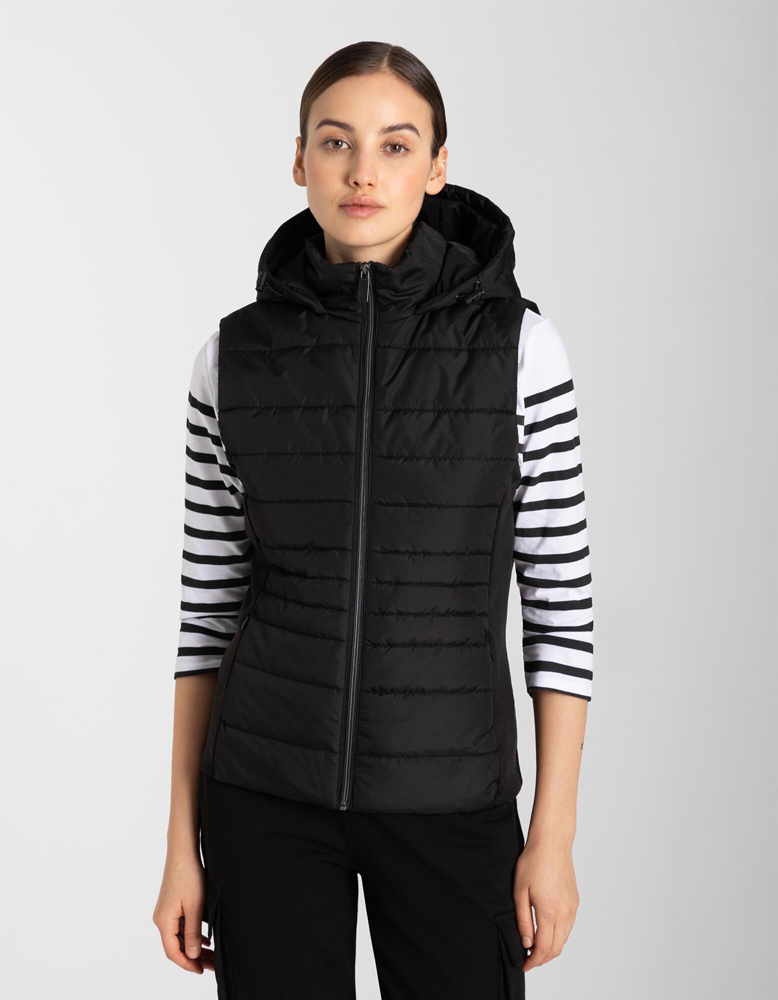 Prošiveni prsluk - Kapuljača - crna