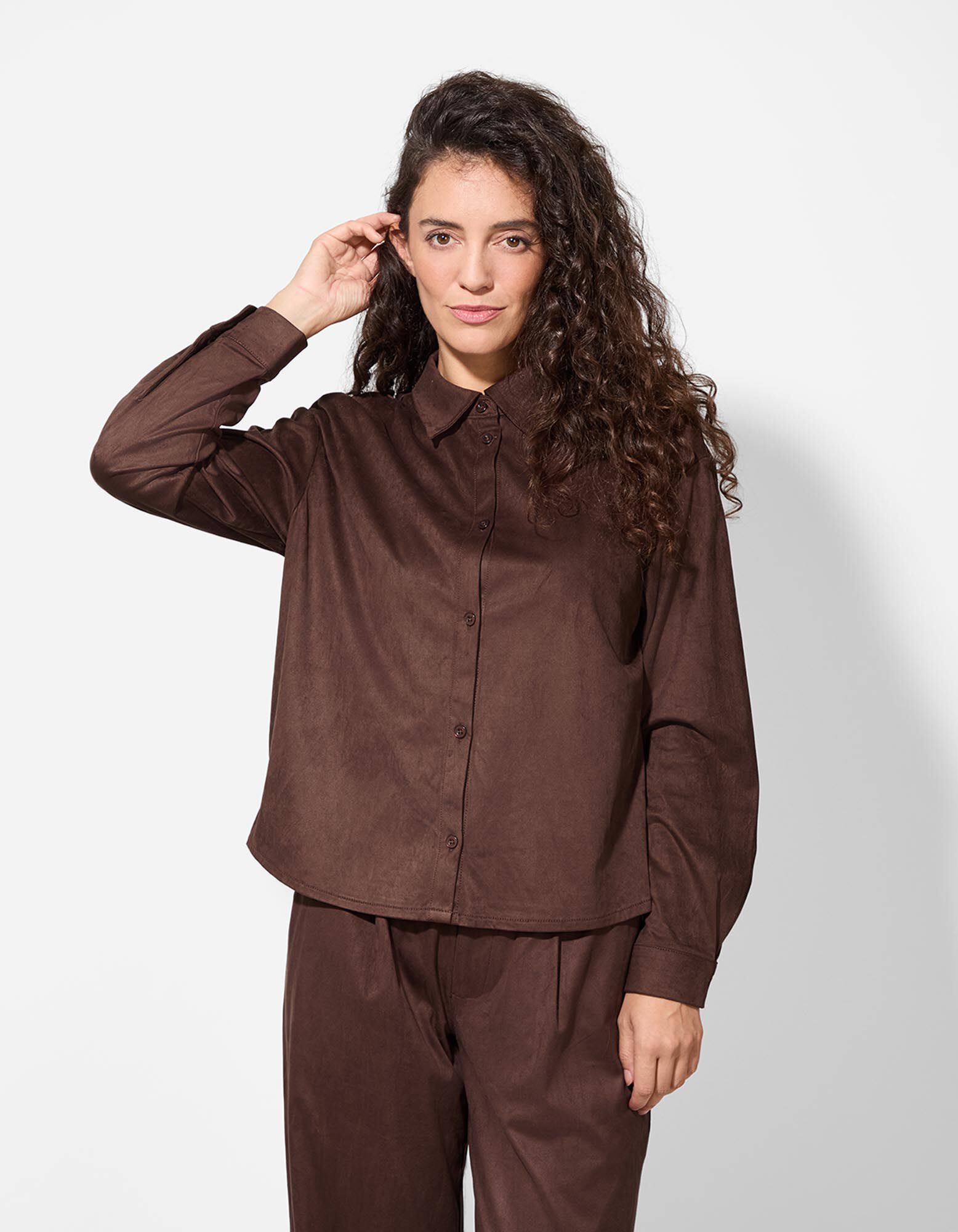 Blúz - Velúr utánzat - sötétbarna