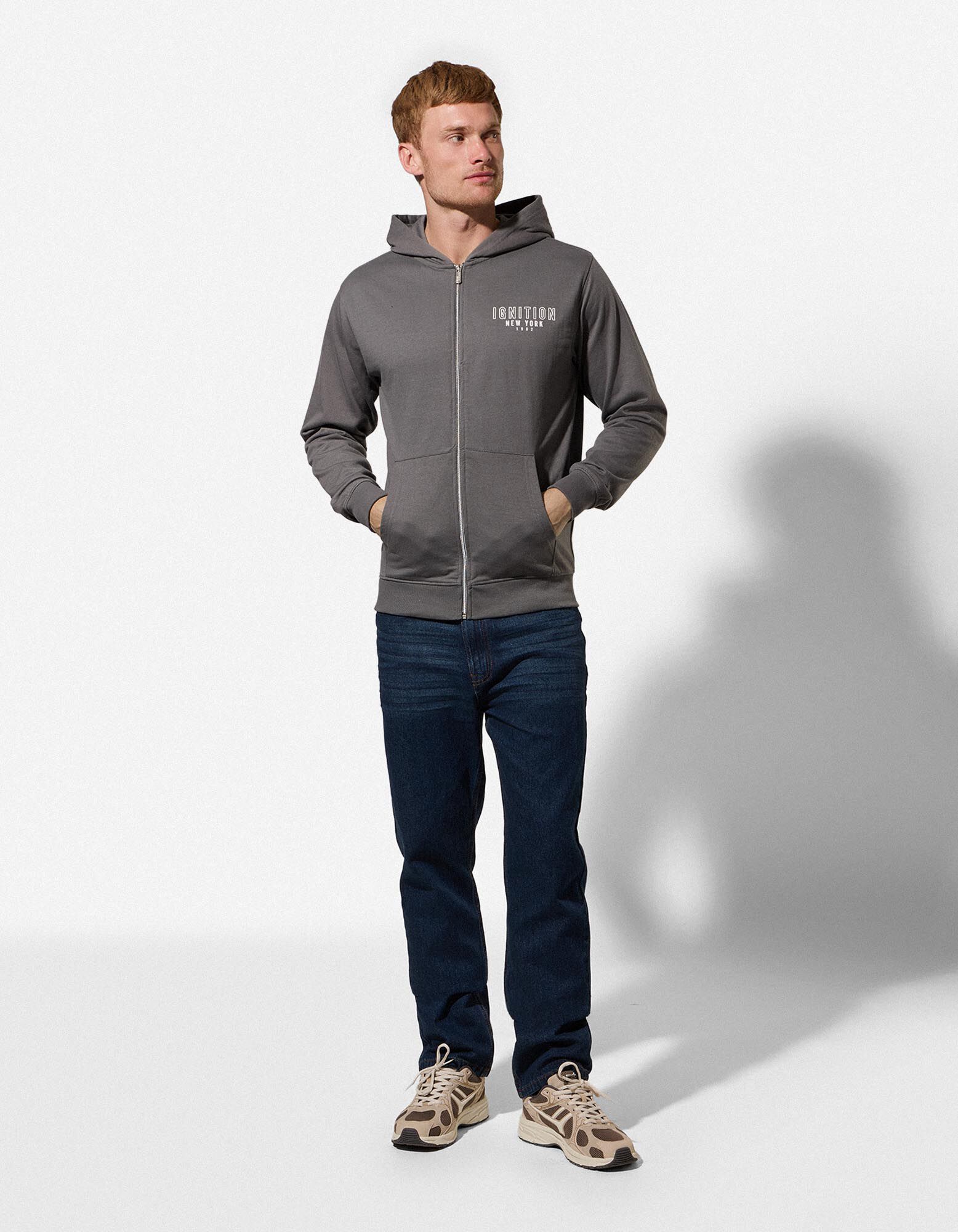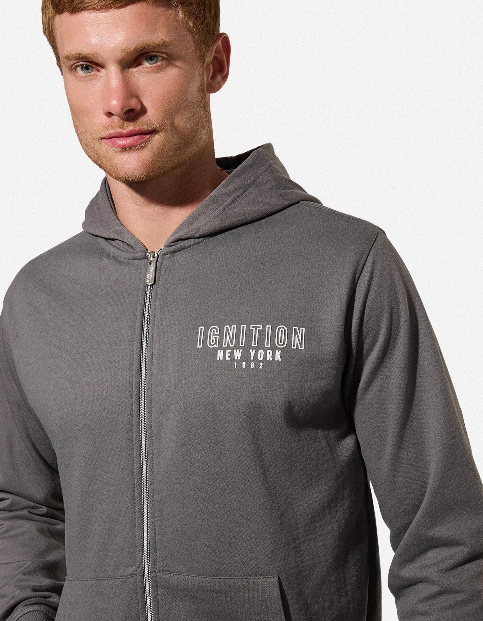 Cipzáros melegítőfelső - Hátul nyomtatott minta - sötétszürke