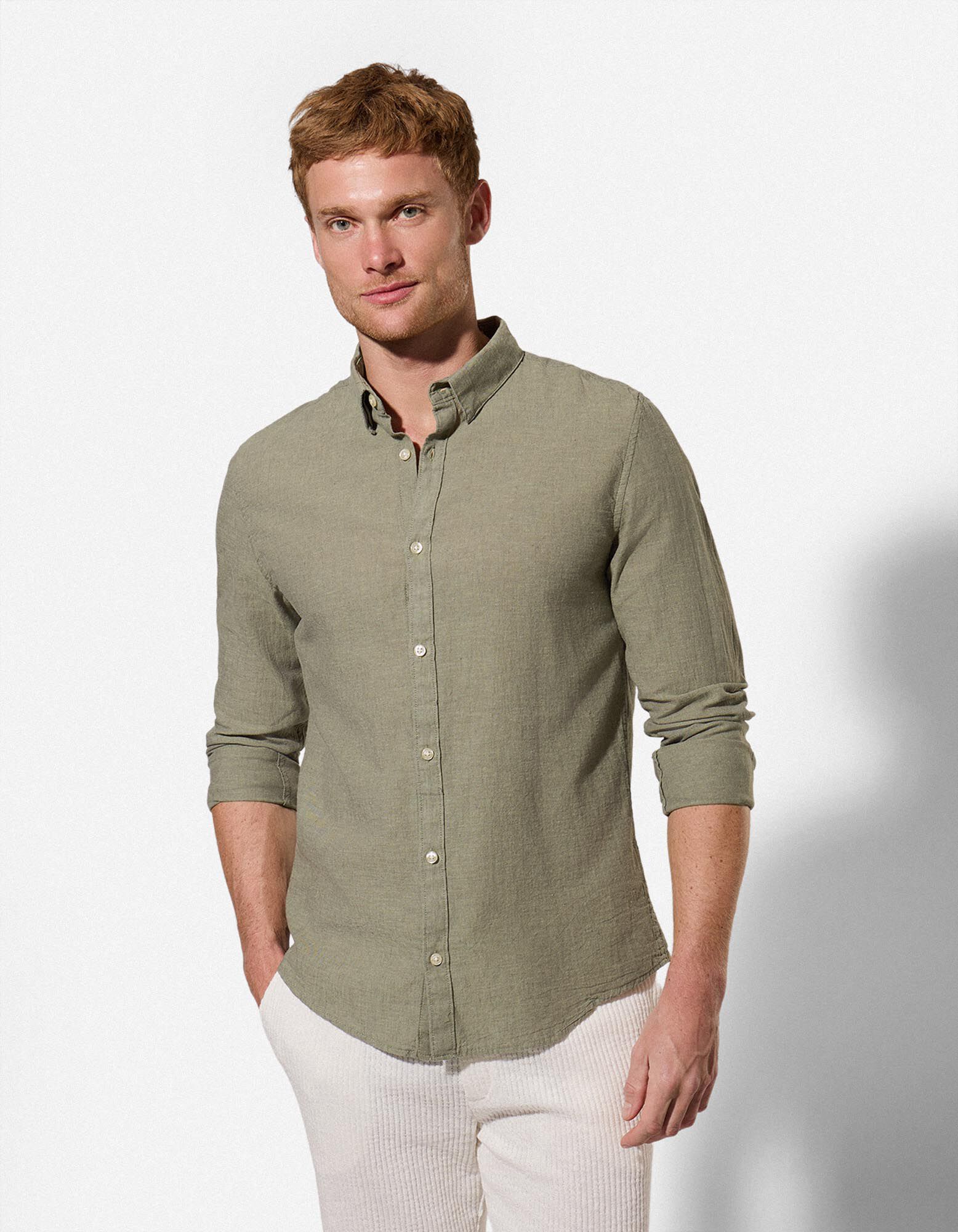 Férfi ing - Vászonkeverék - zöld
