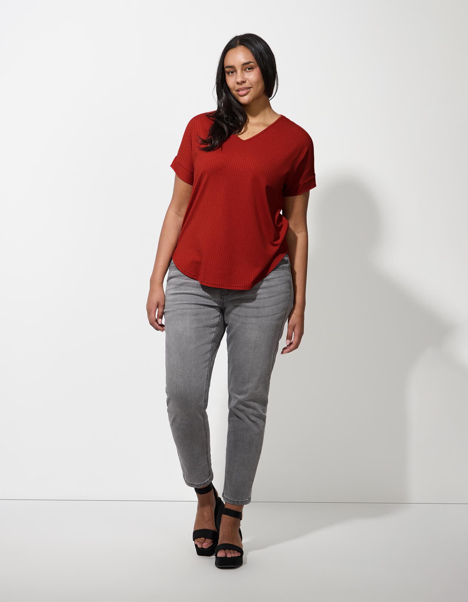 Felső - V-kivágás - mélyvörös
