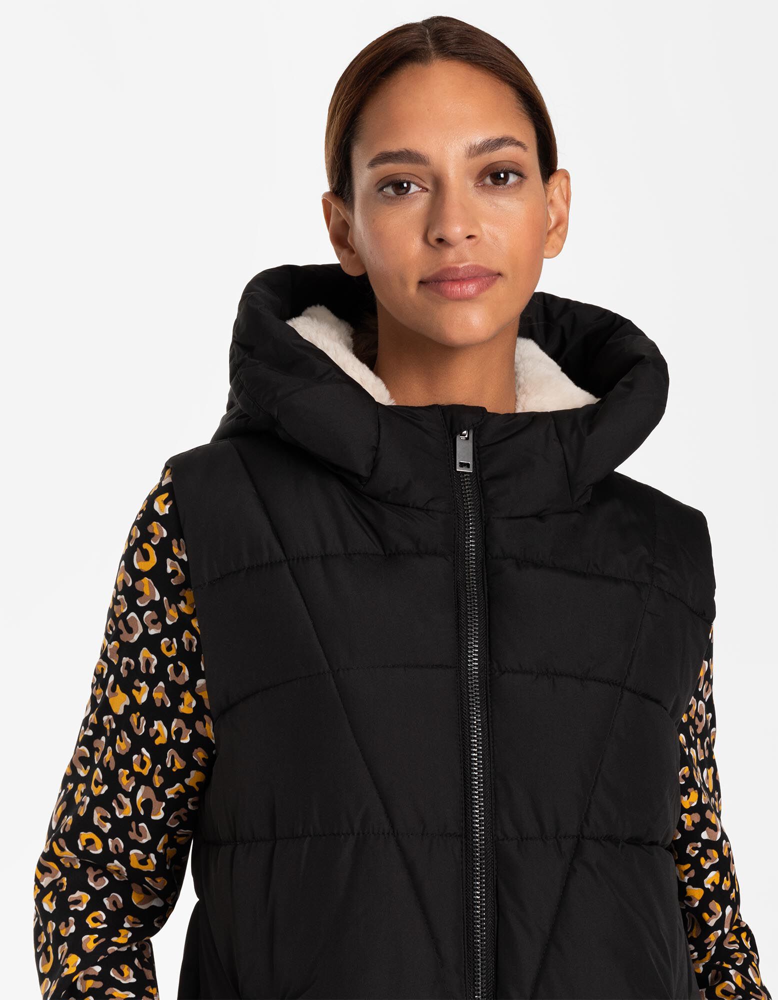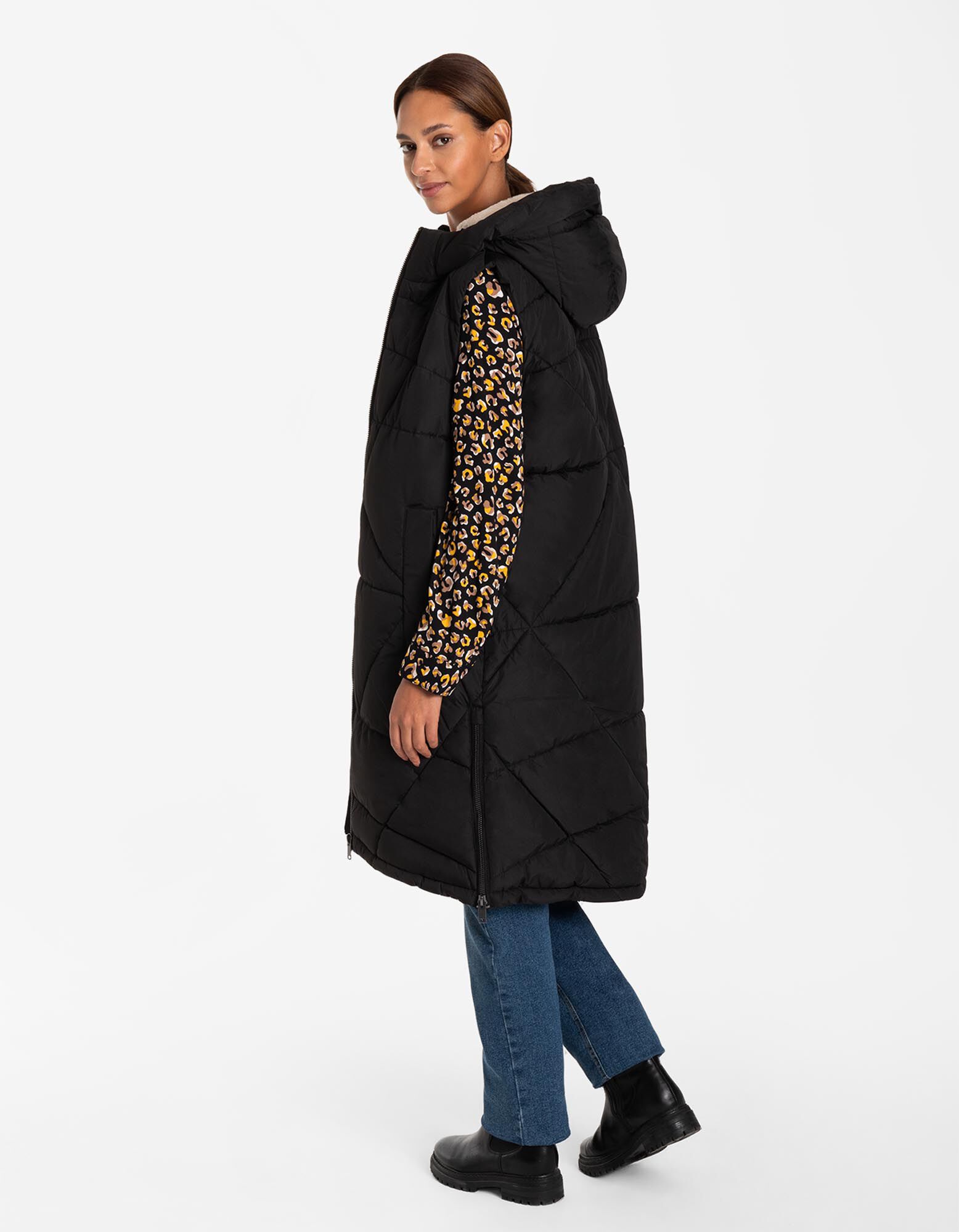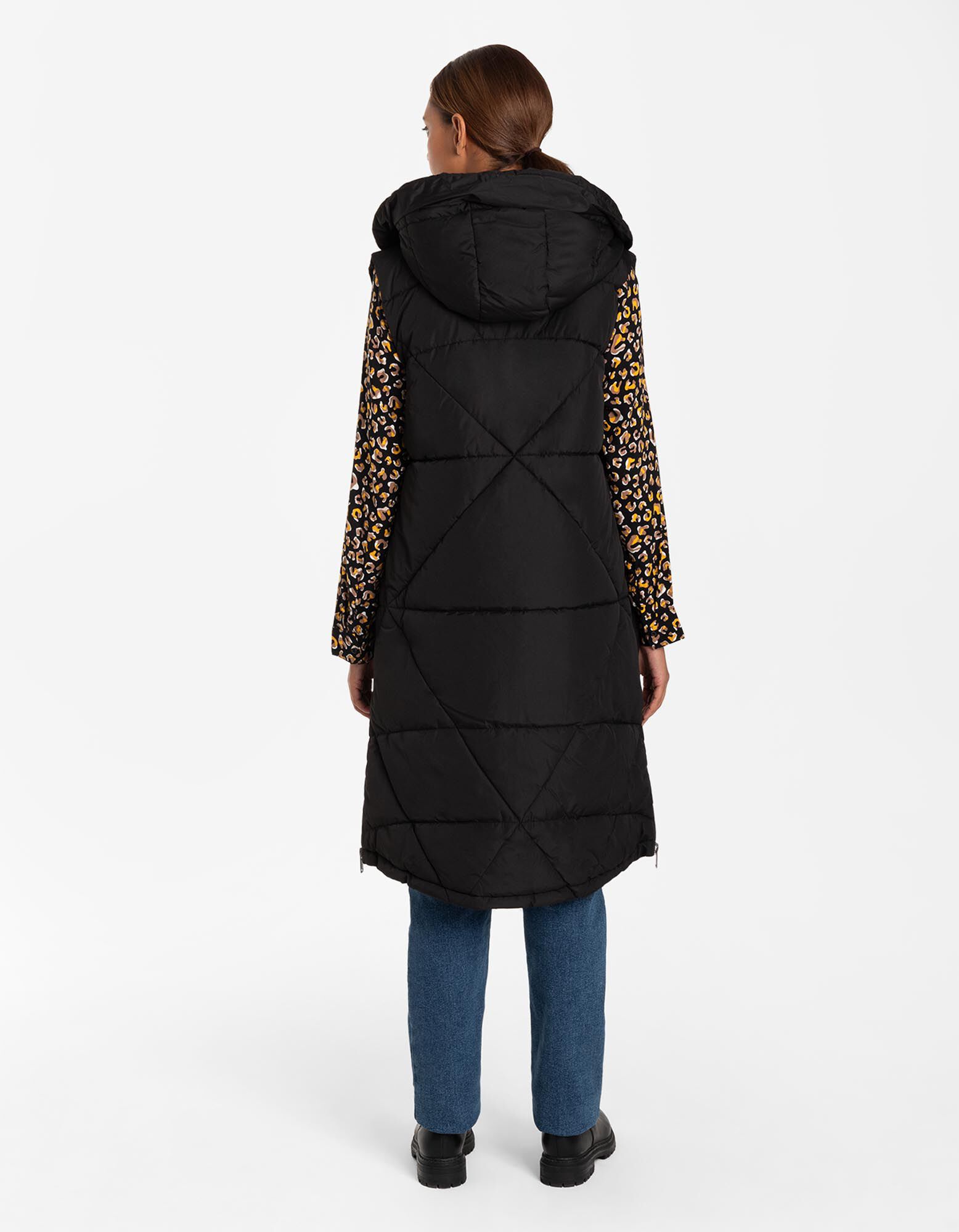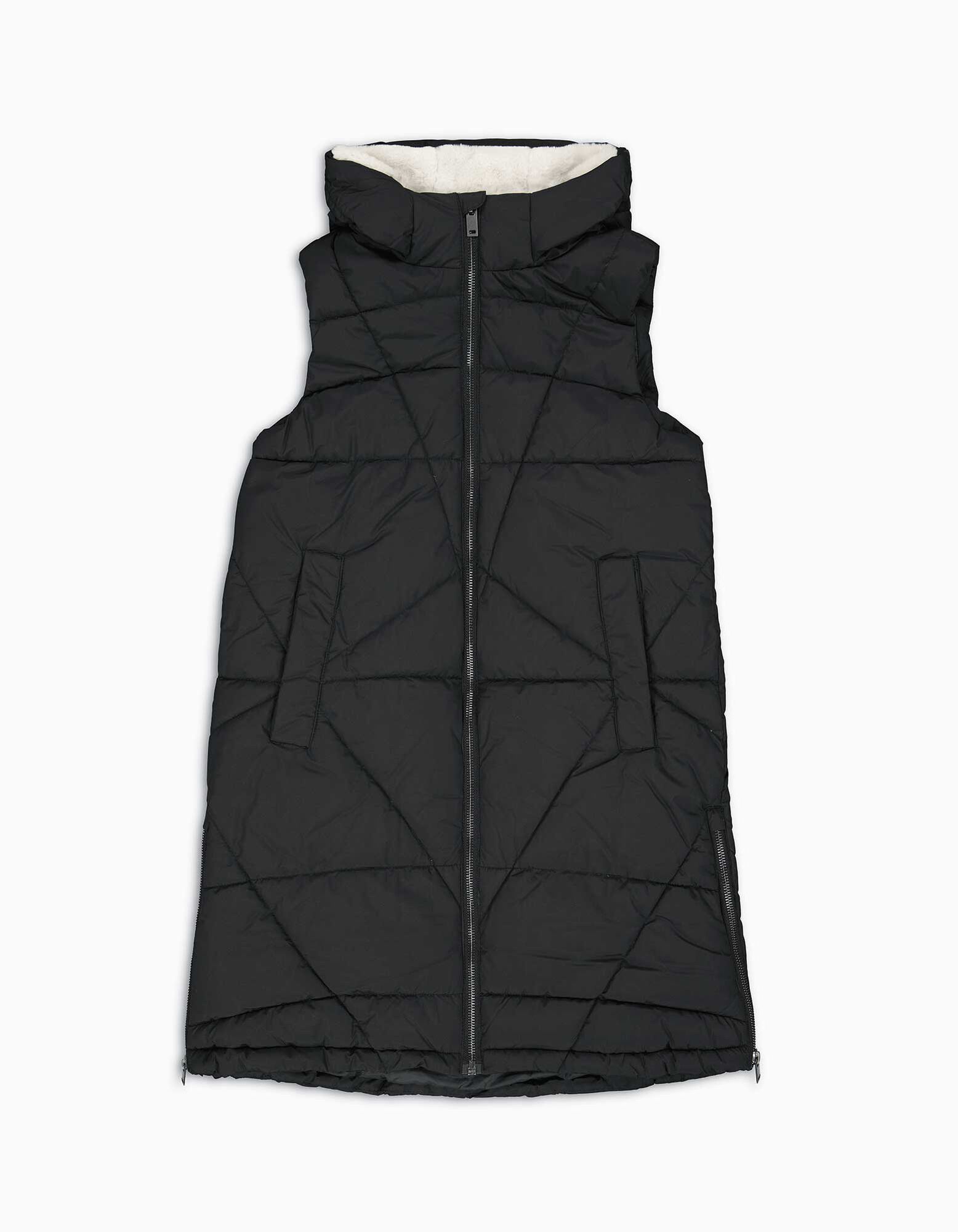 Hosszú mellény - Műszőrme - fekete