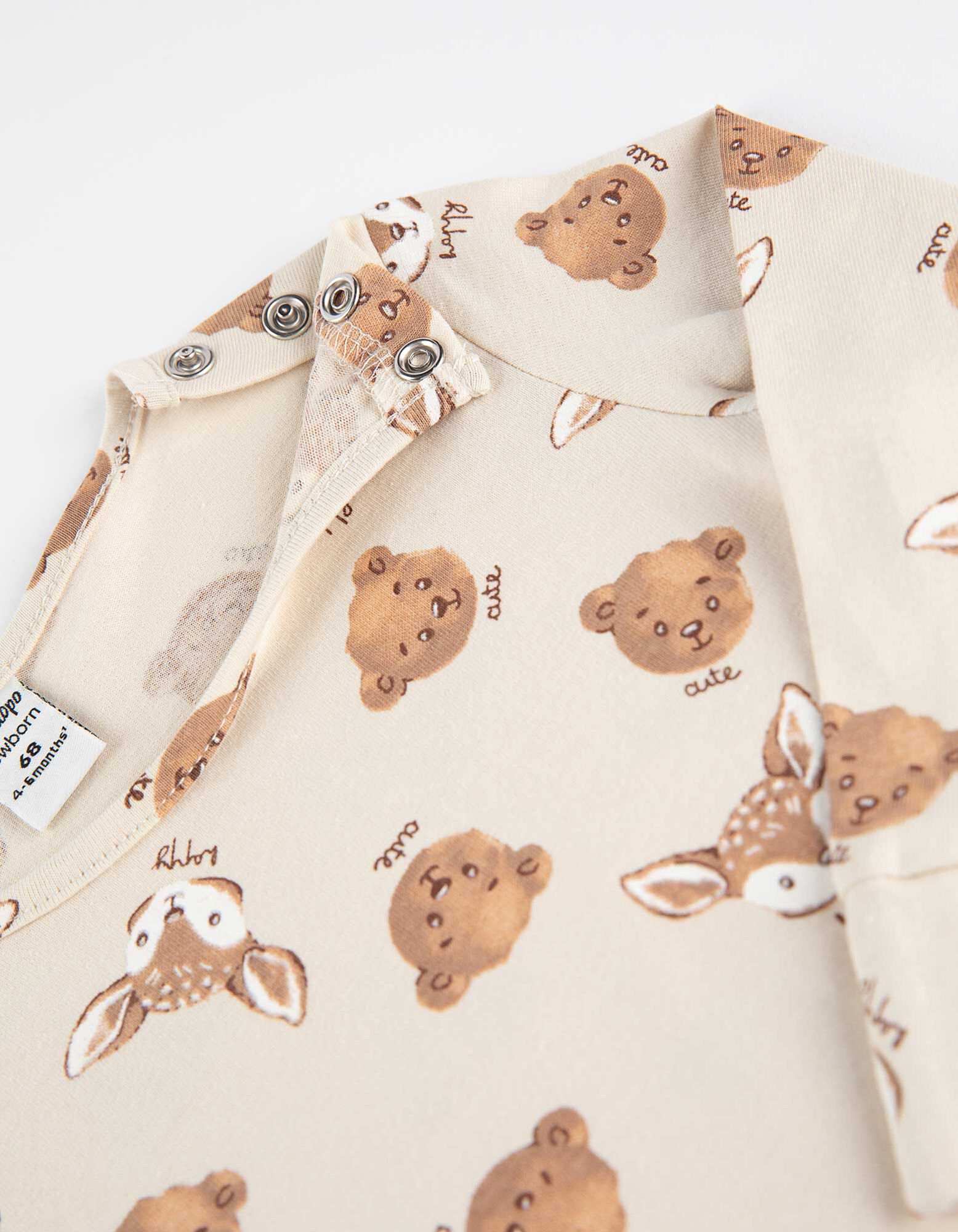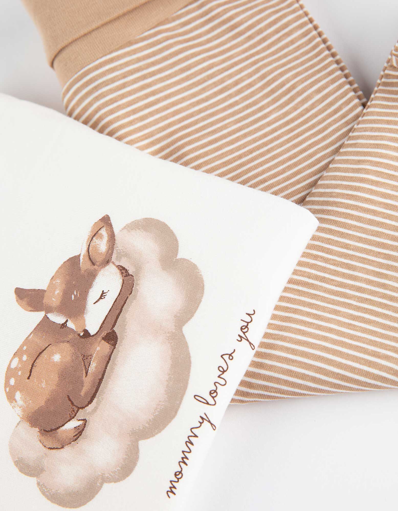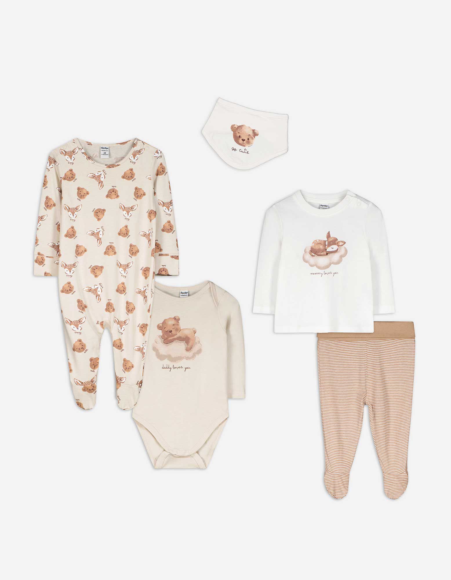 Hosszú ujjú bodysuitból, nadrágból, pólóból, pulóverből és mellényből álló készlet - Elszórt nyomott minta - feher