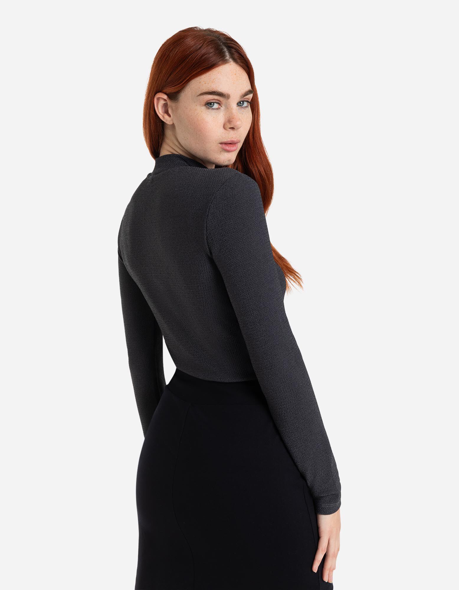 Hosszú ujjú felső - Csillámló anyag - sötétszürke
