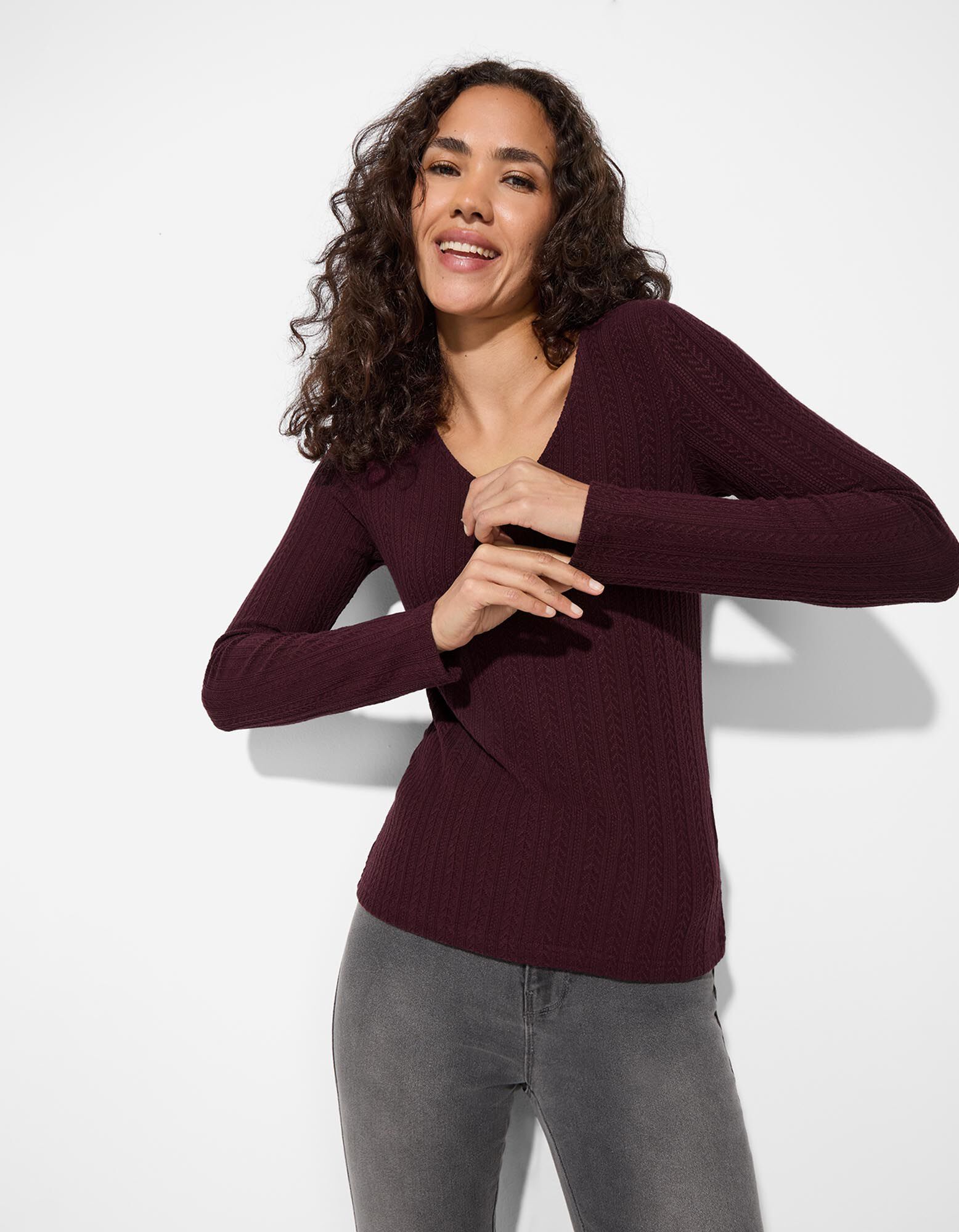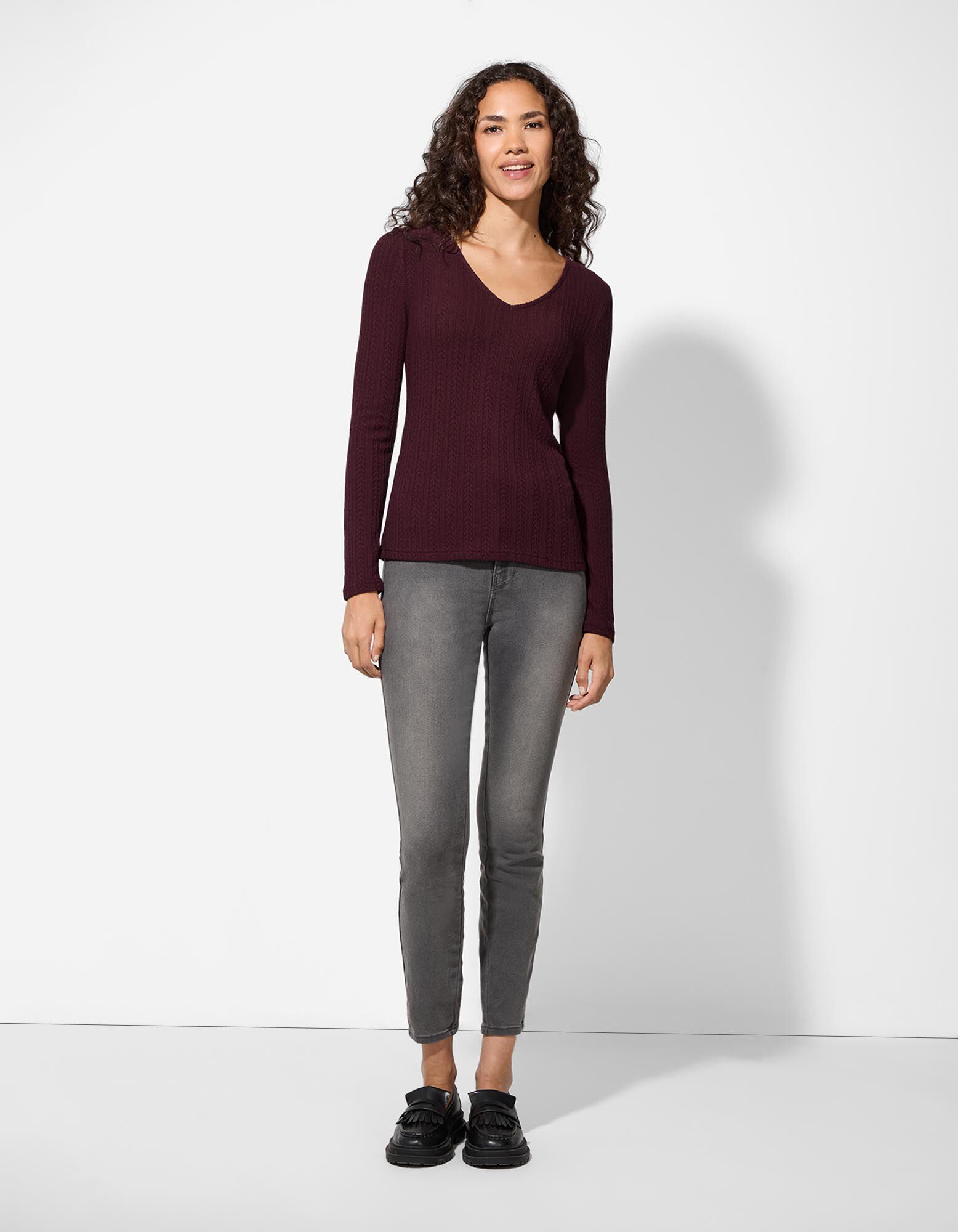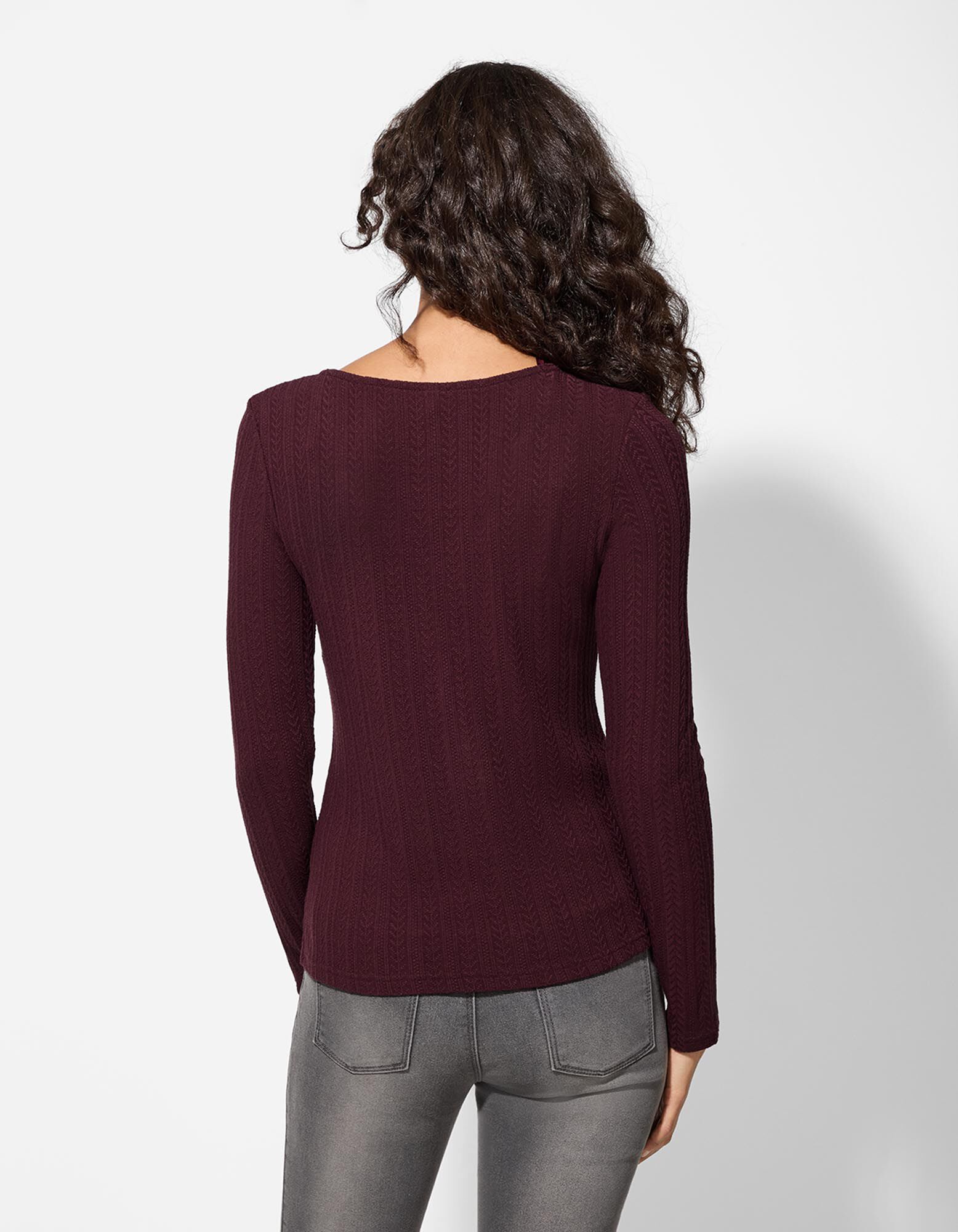 Hosszú ujjú felső - Pointelle - sotetlila