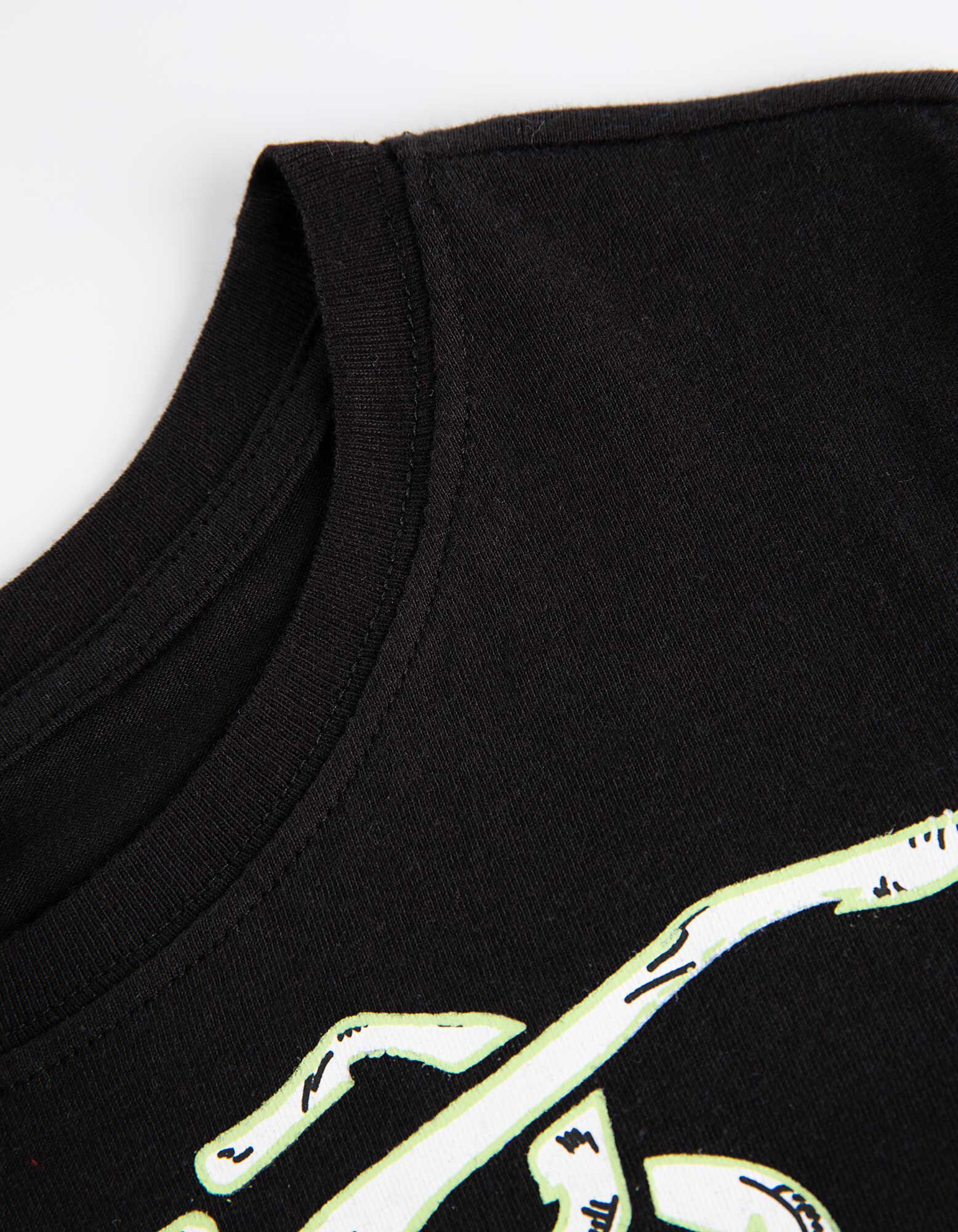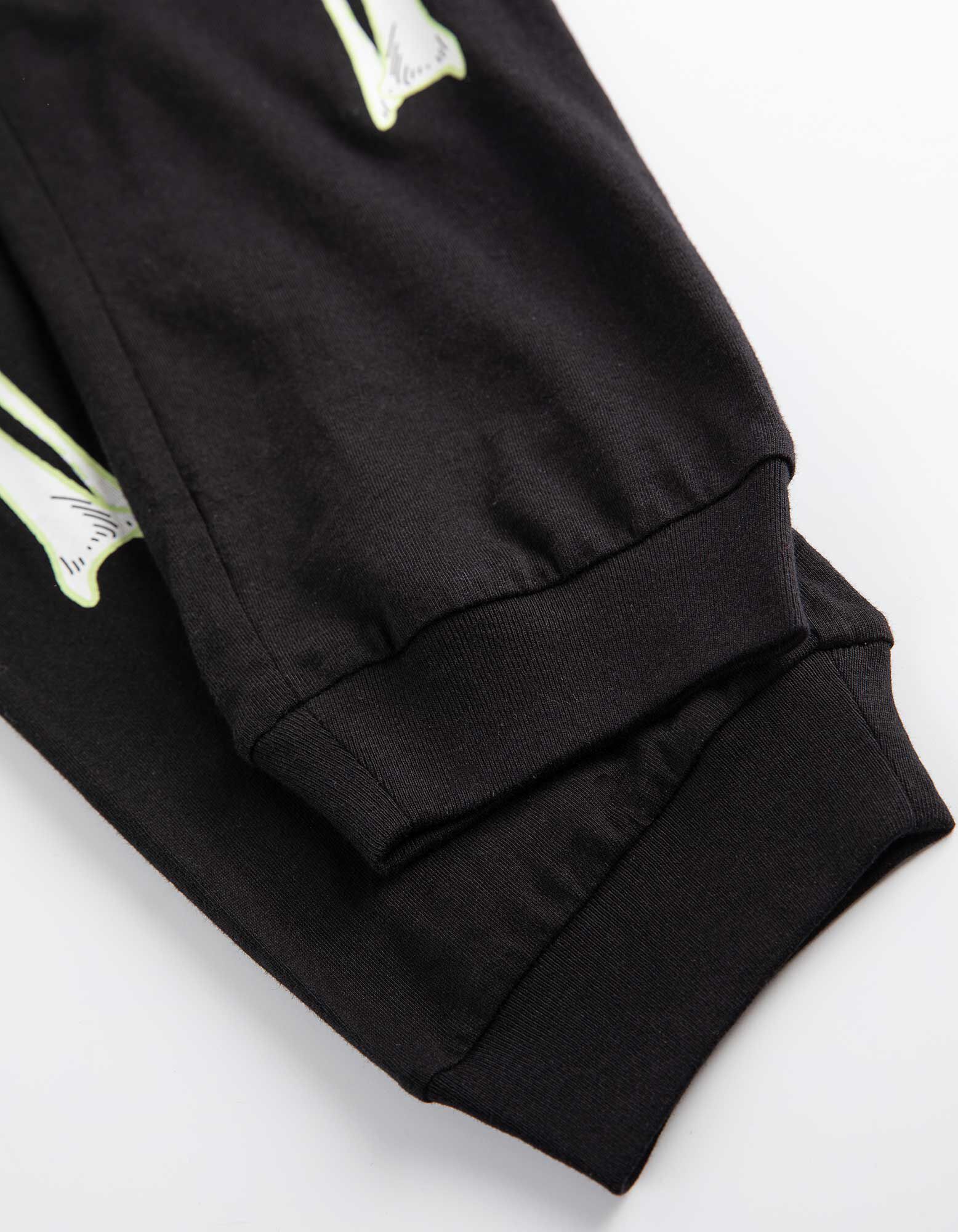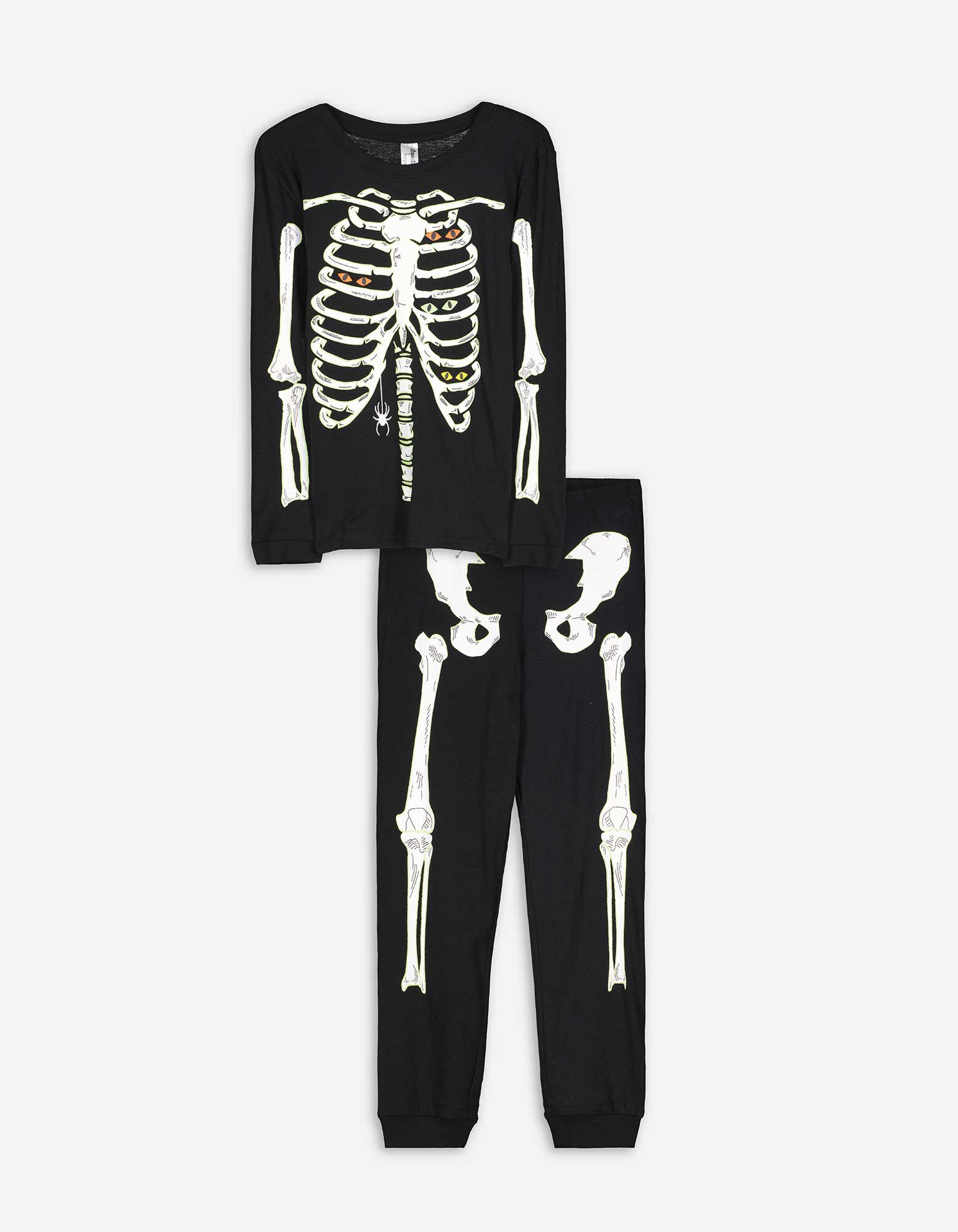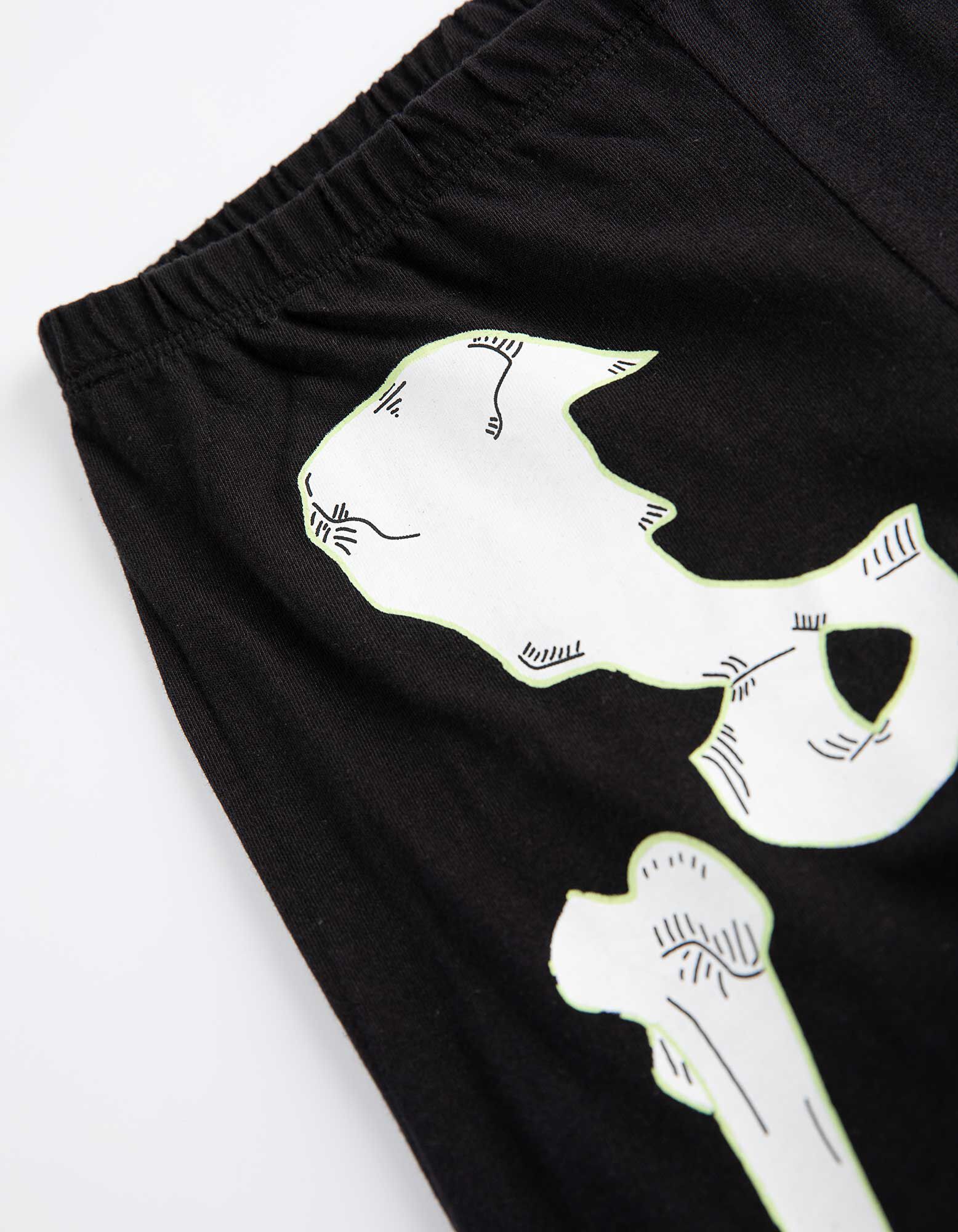 Hosszú ujjú ingből és nadrágból álló pizsama szett  - Világít a sötétben - fekete