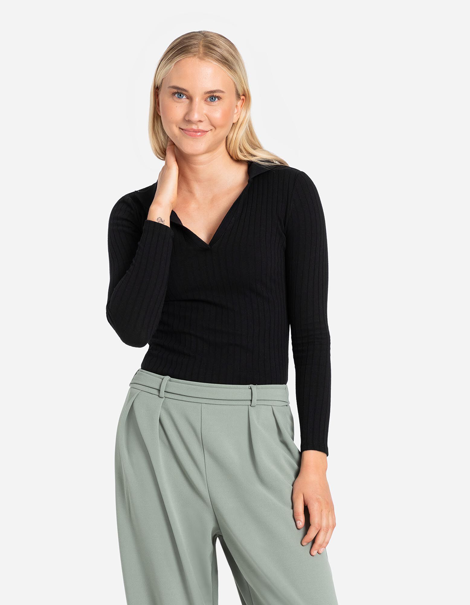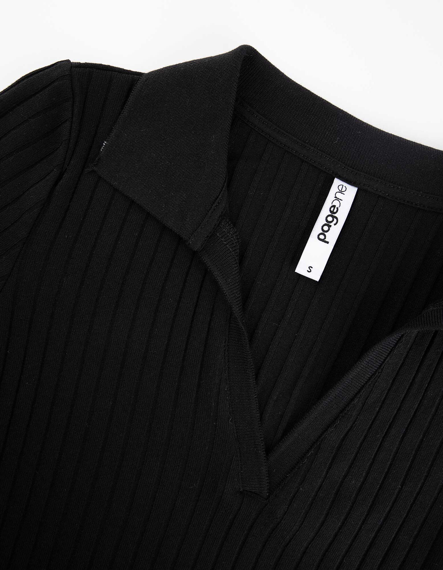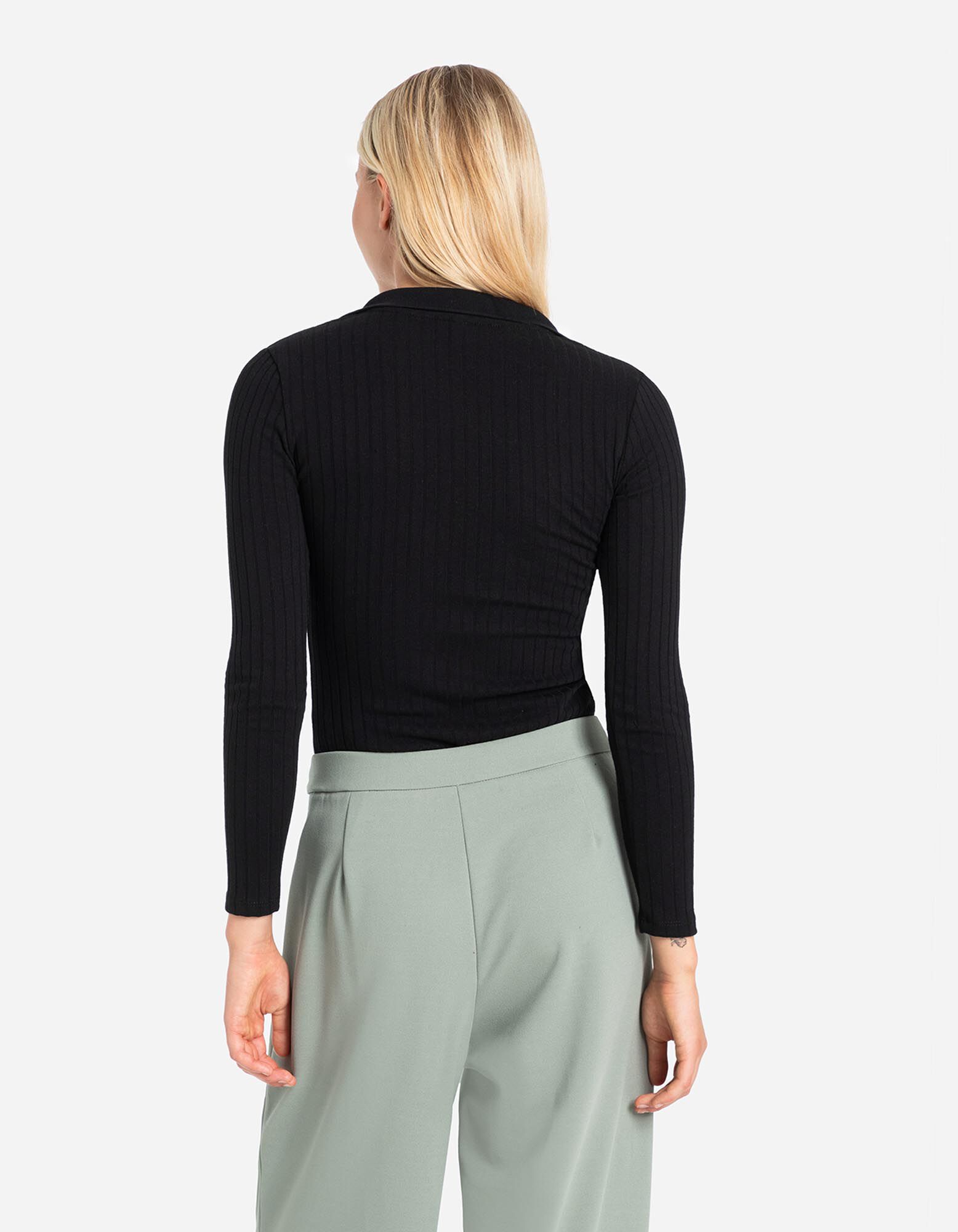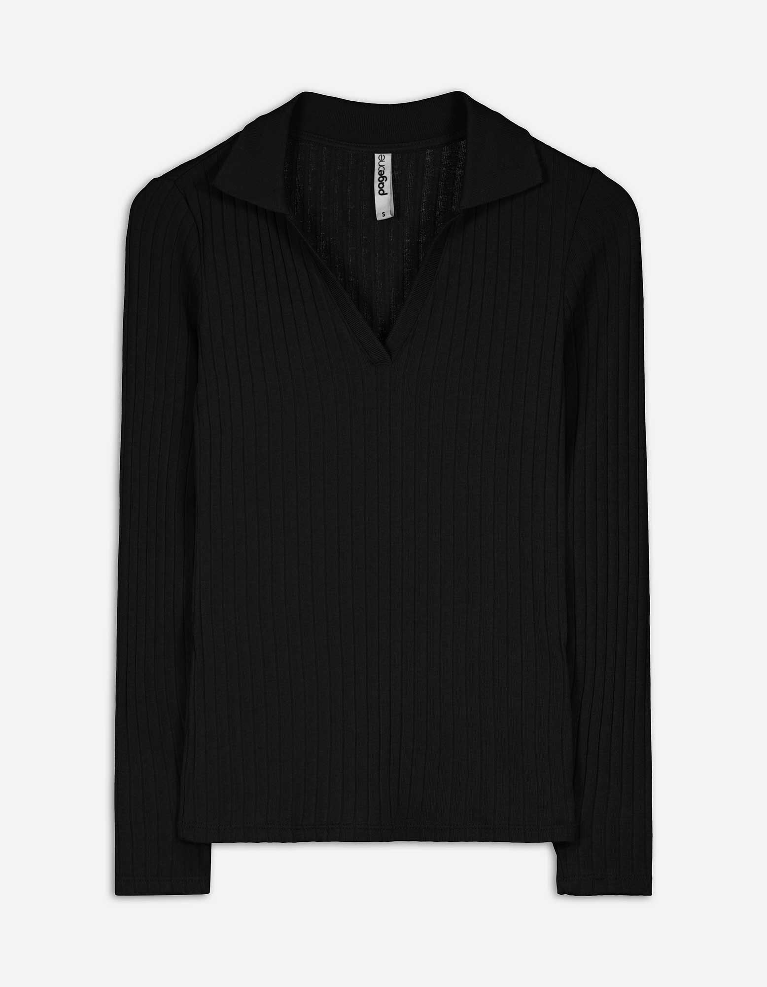 Hosszú ujjú póló - Bordázott - fekete