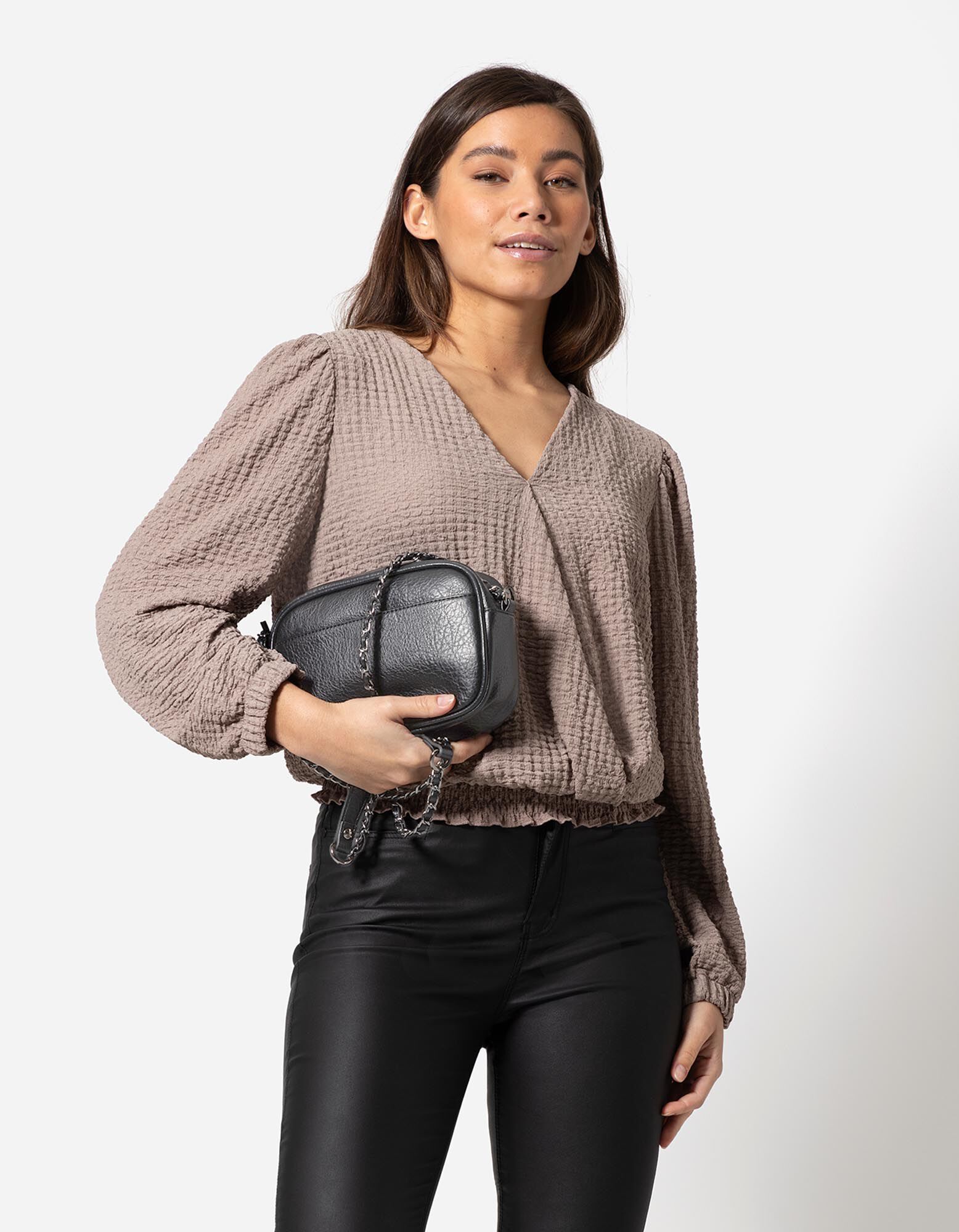 Kézitáska - Bőrhatású - fekete