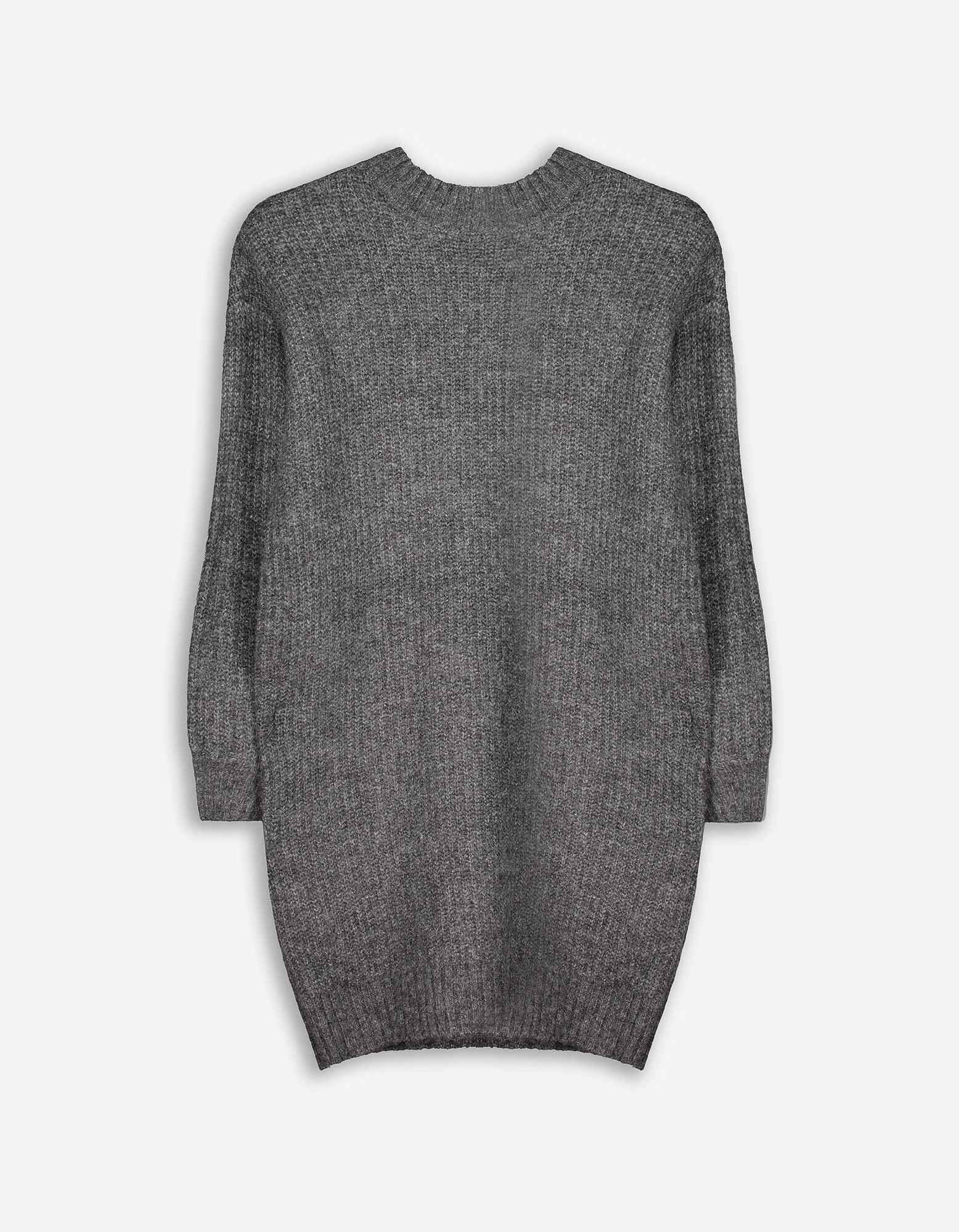 Kötött ruha - Ejtett vállú - sötétszürke