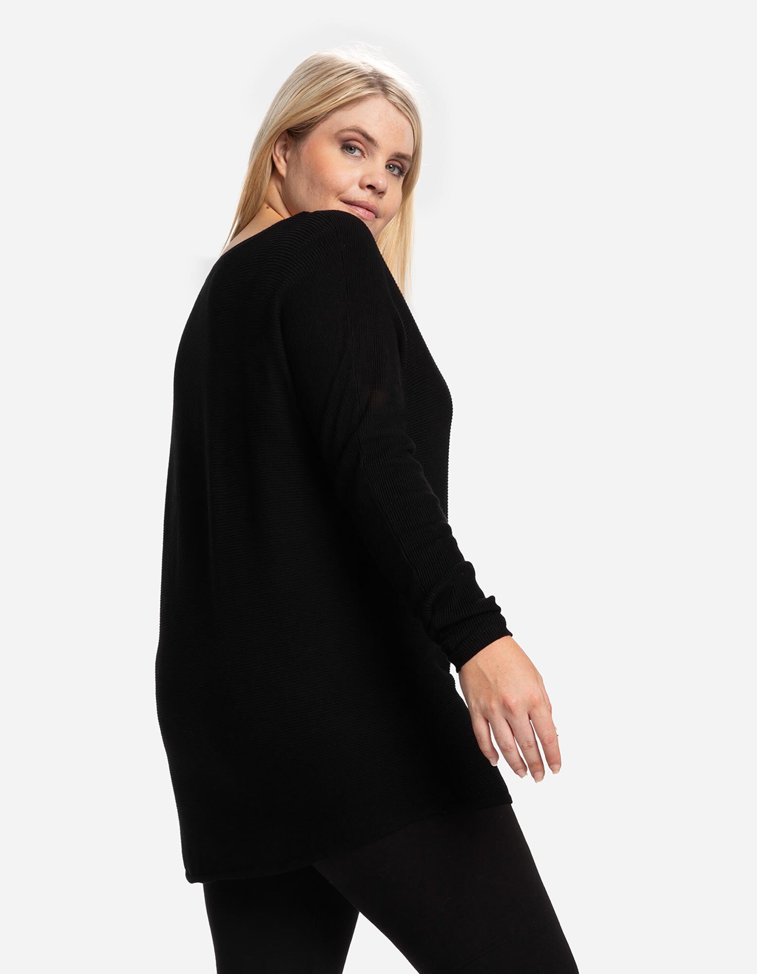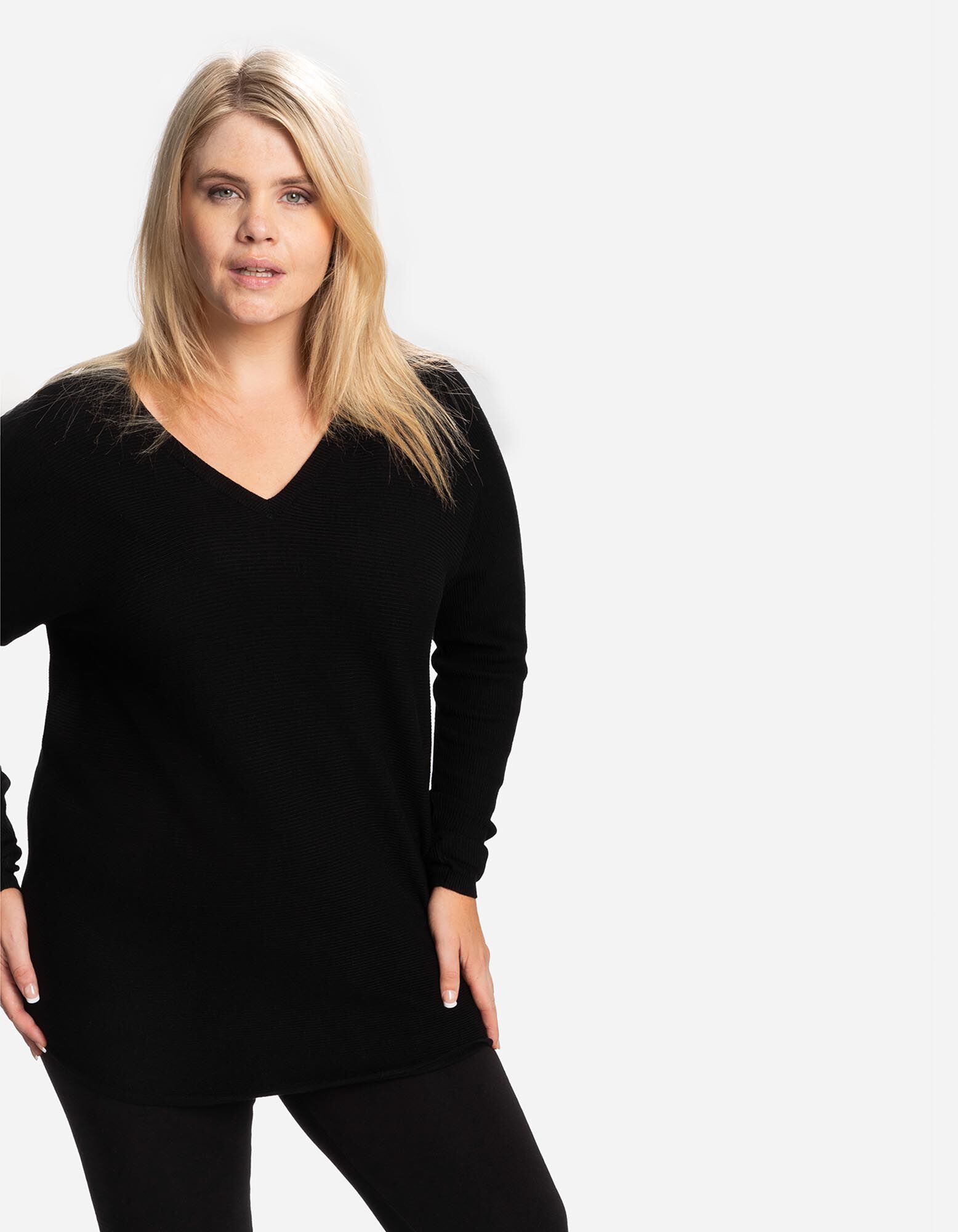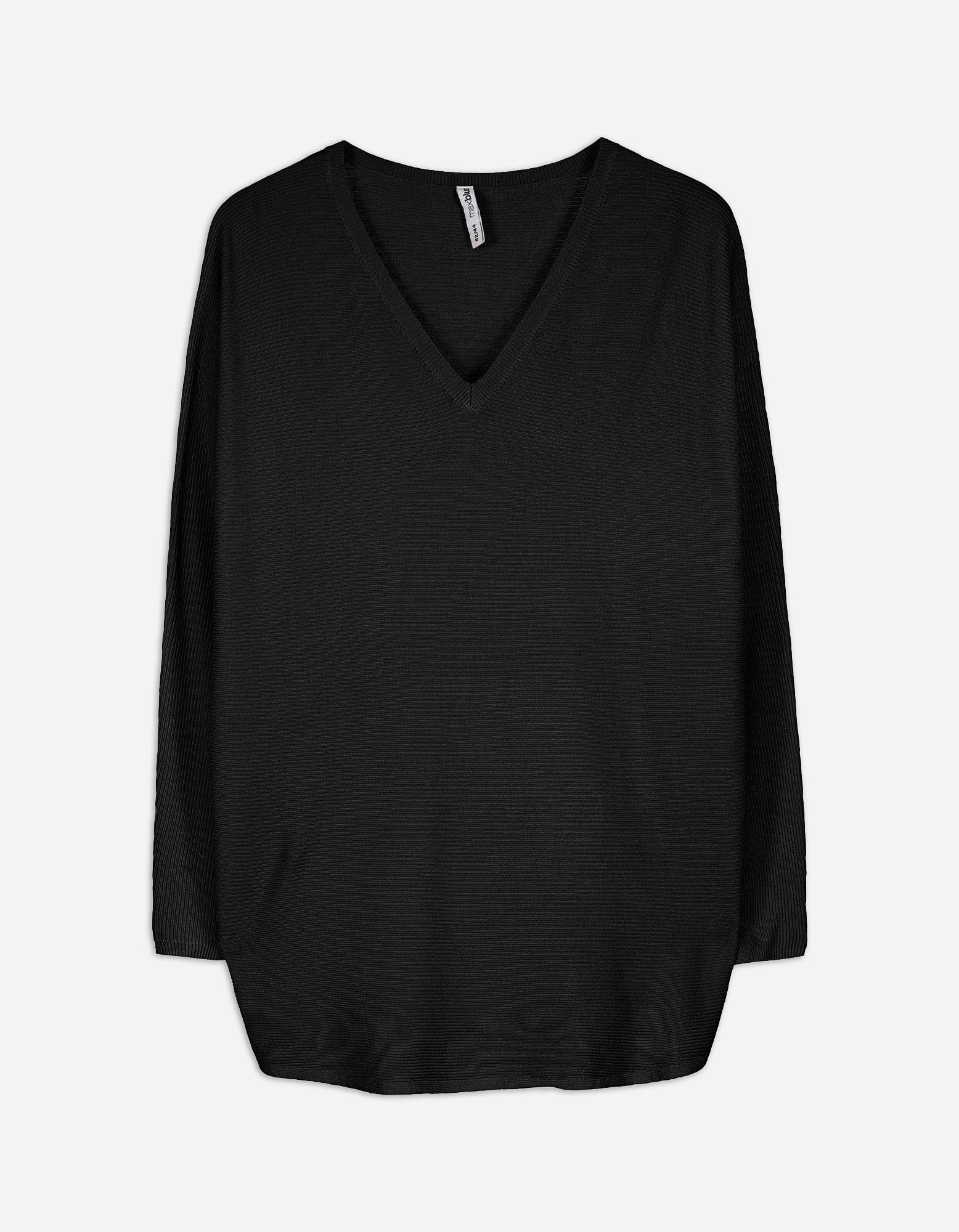 Pulóver - V-kivágás - fekete
