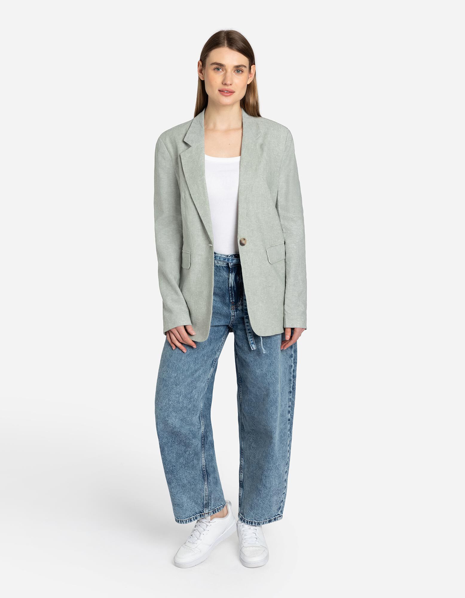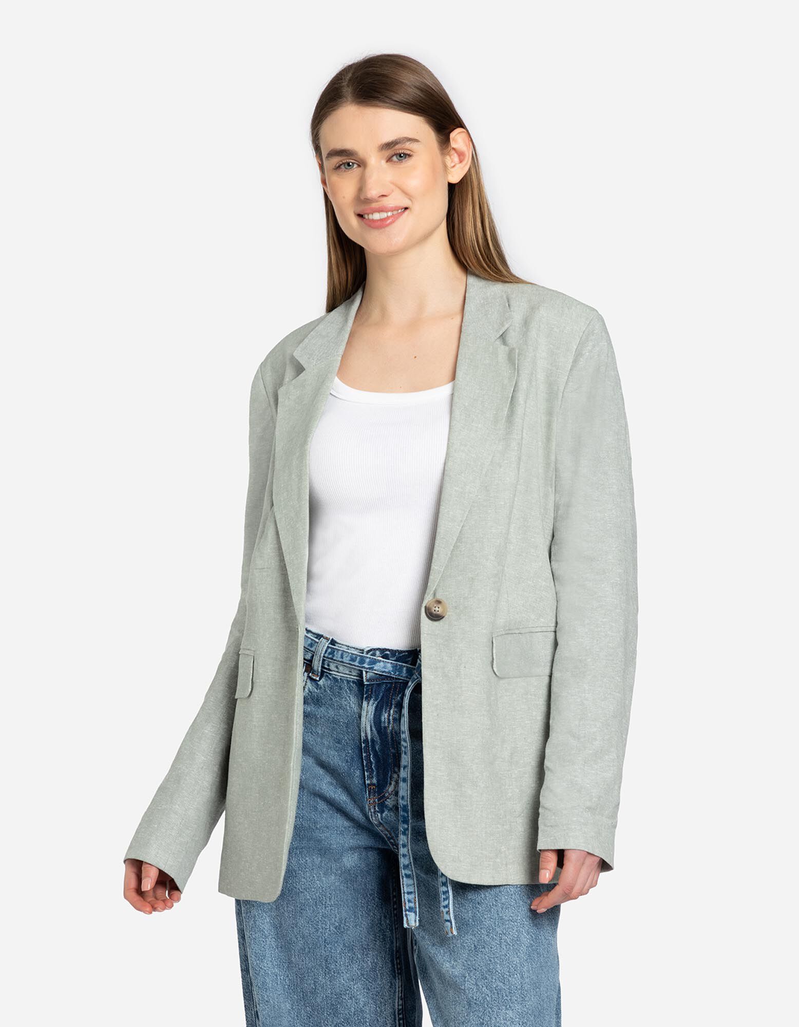Blazer - Misto lino - turchese