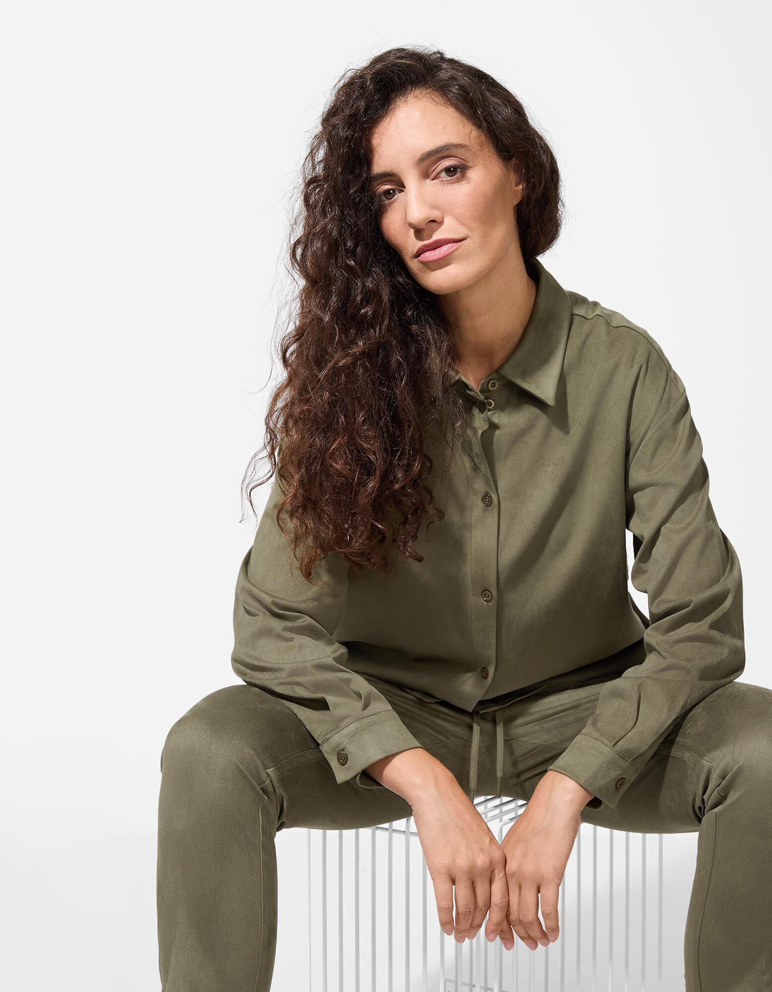 Blusa - Imitazione di camoscio - verde scuro
