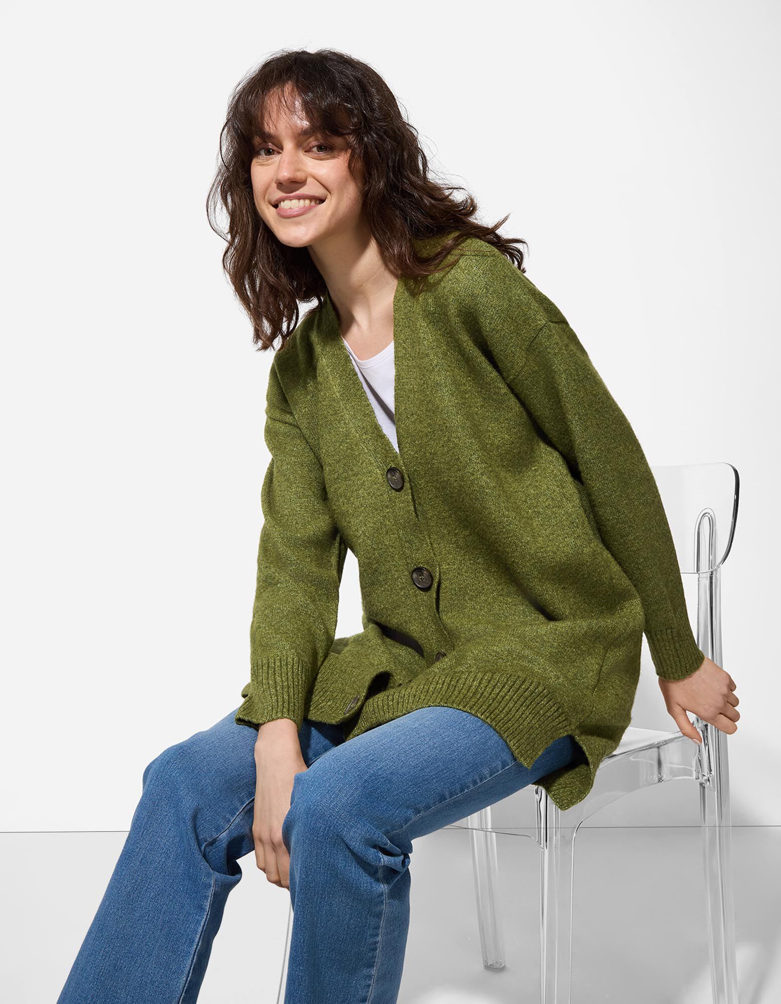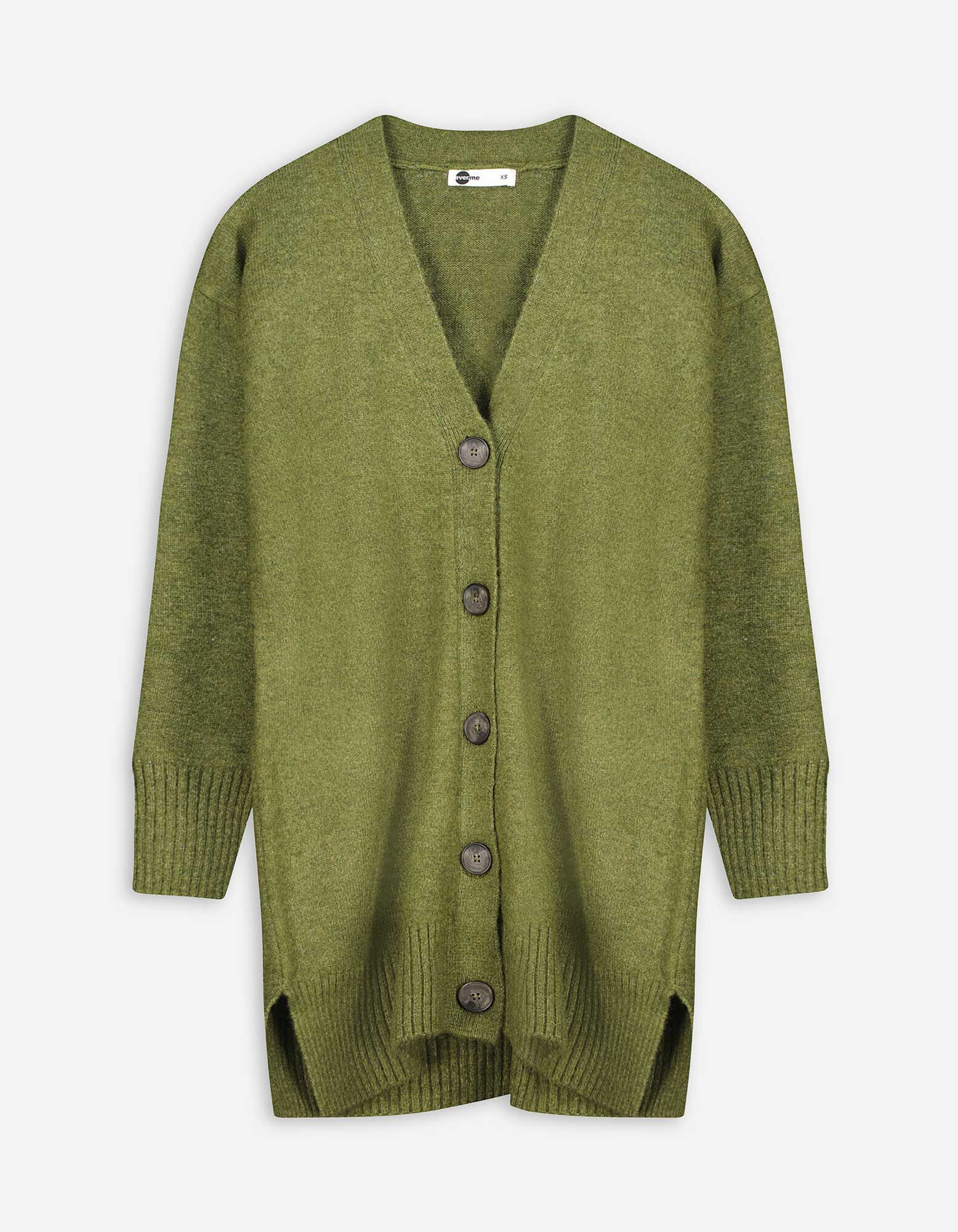 Cardigan lungo - Scollo a V - verde