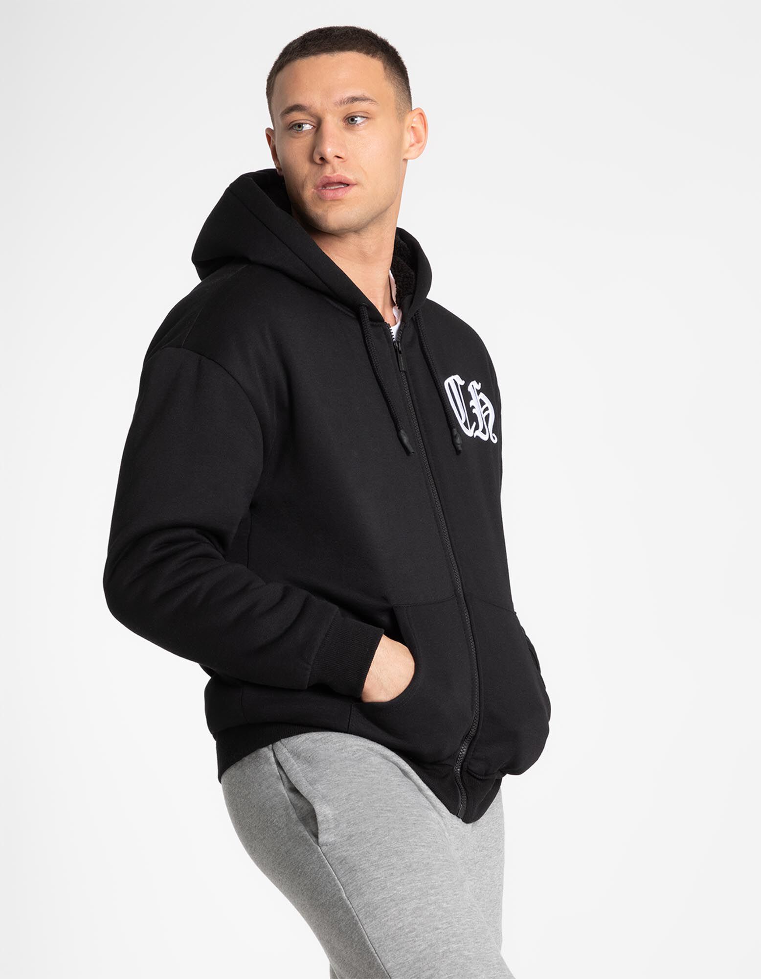 Felpa aperta - Ricami - nero