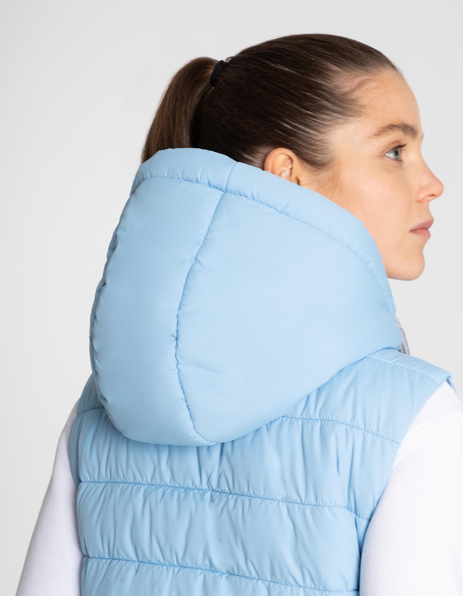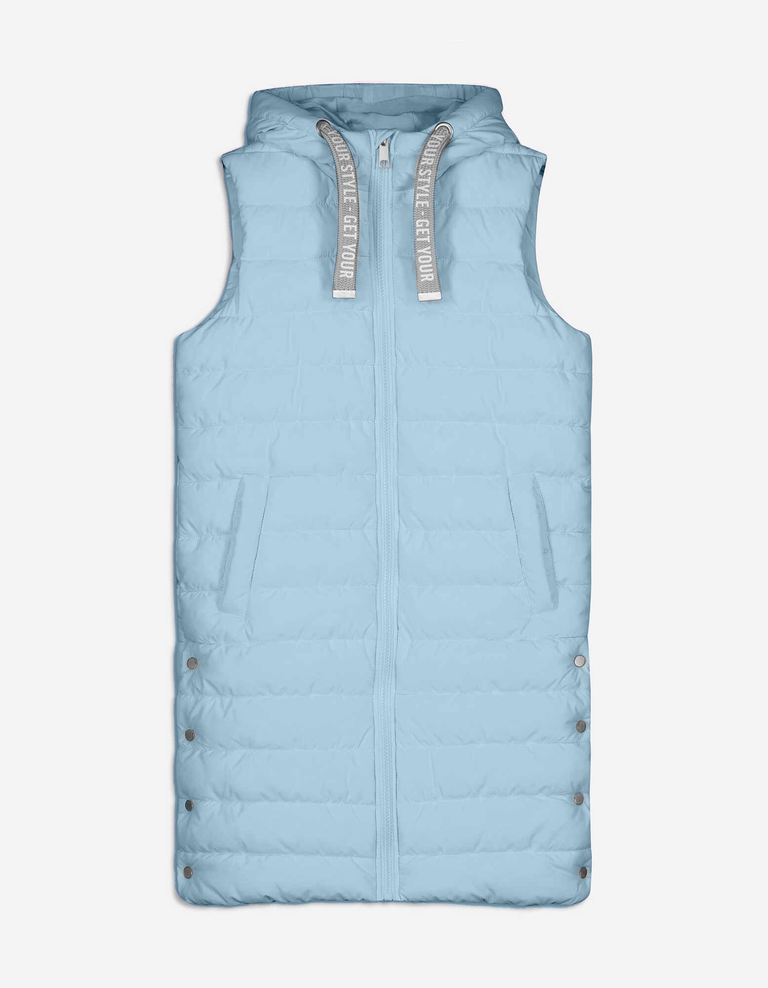 Gilet lungo - Cappuccio con coulisse - celeste