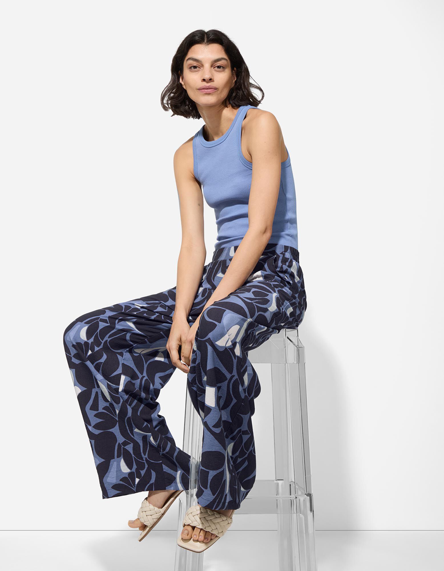 Pantaloni a palazzo - Stampa allover - blu