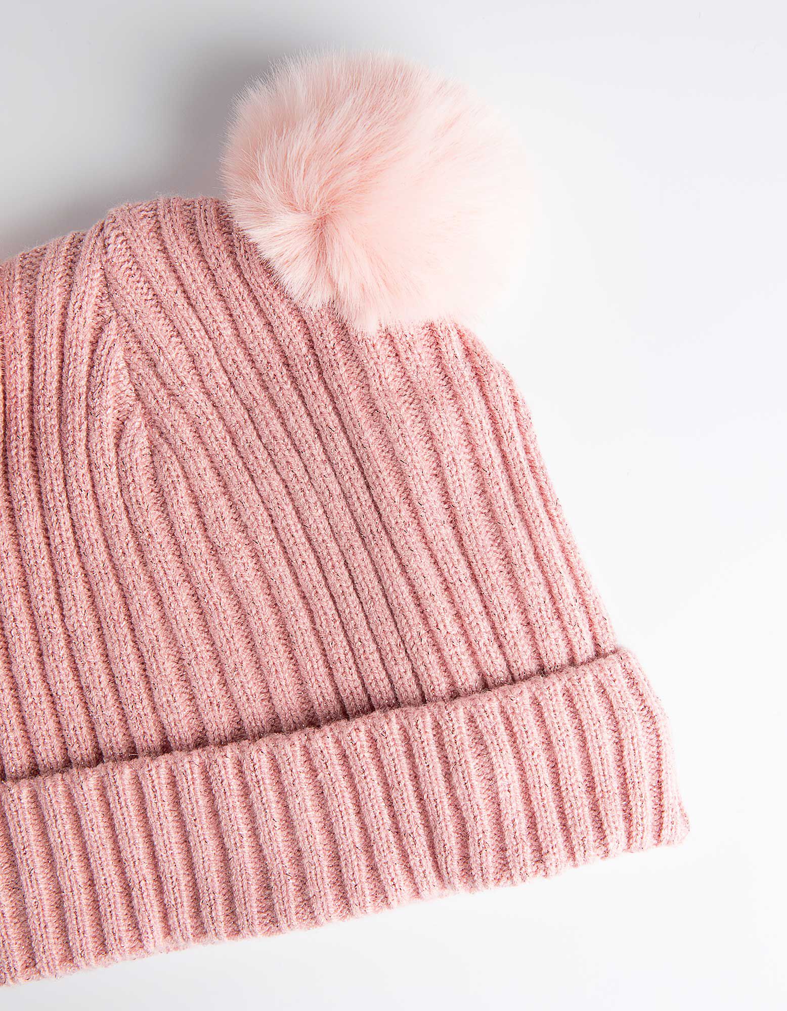 Bobble kepurė - Briaunuotas trikotažas - sviesiai rozinis