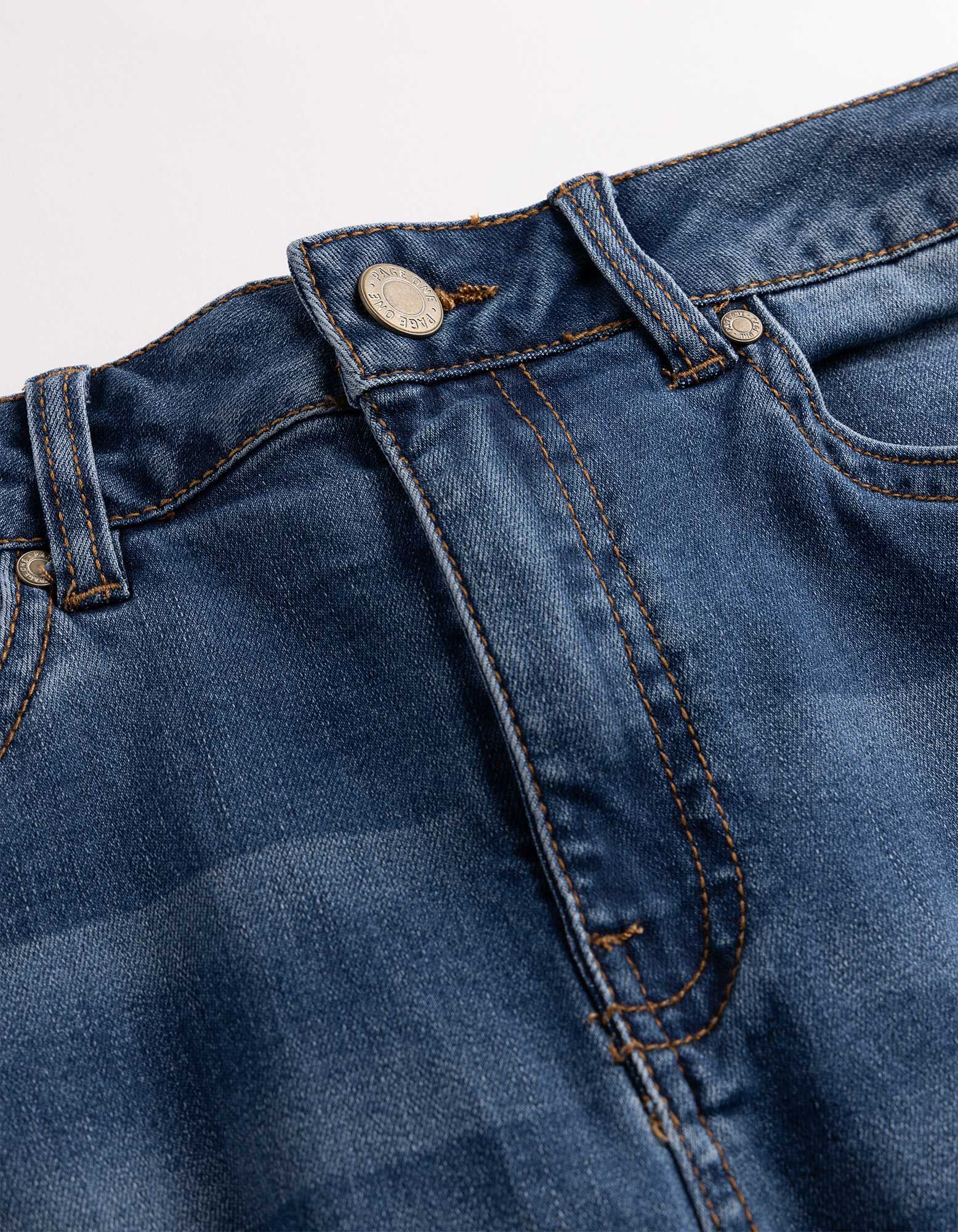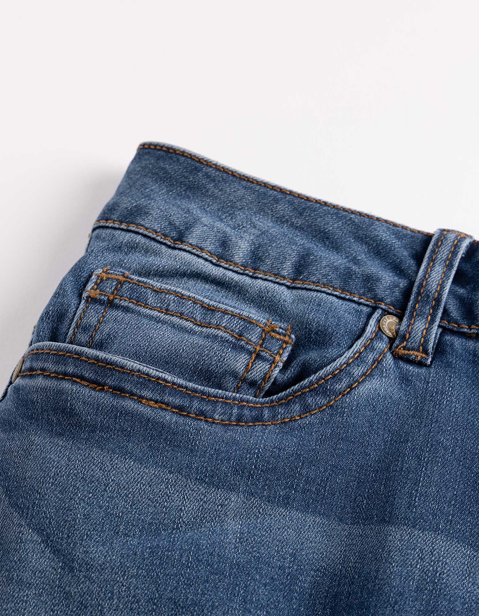 Vidutinės mėlynos spalvos džinsinis audinys