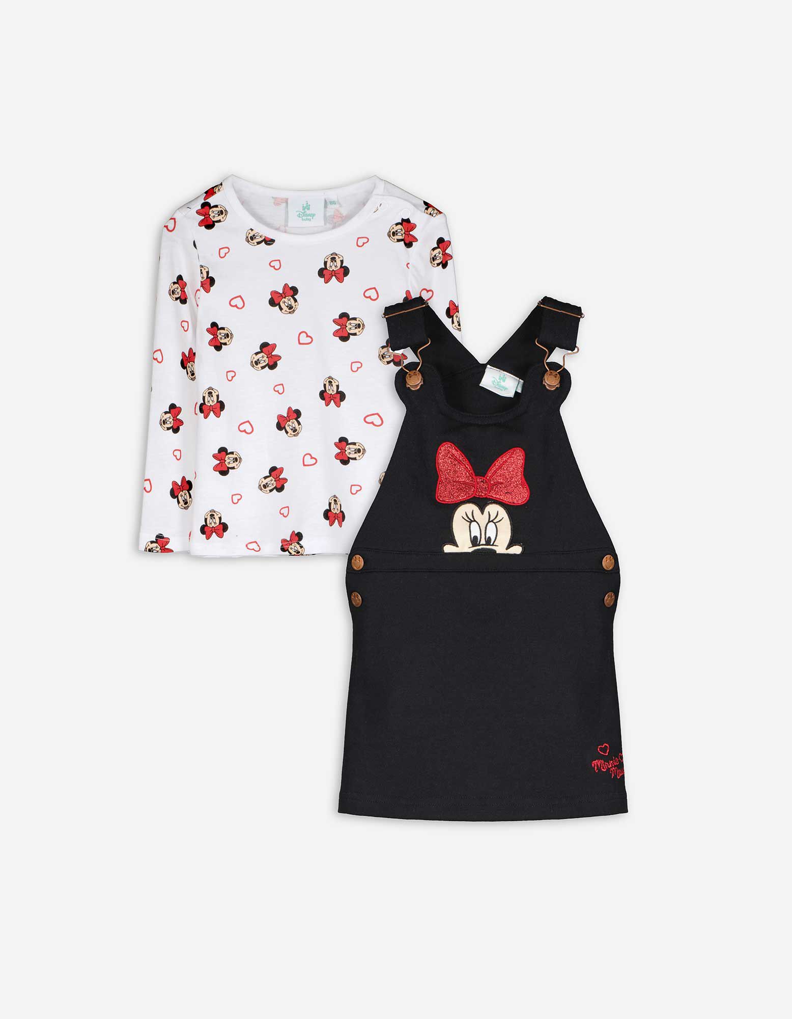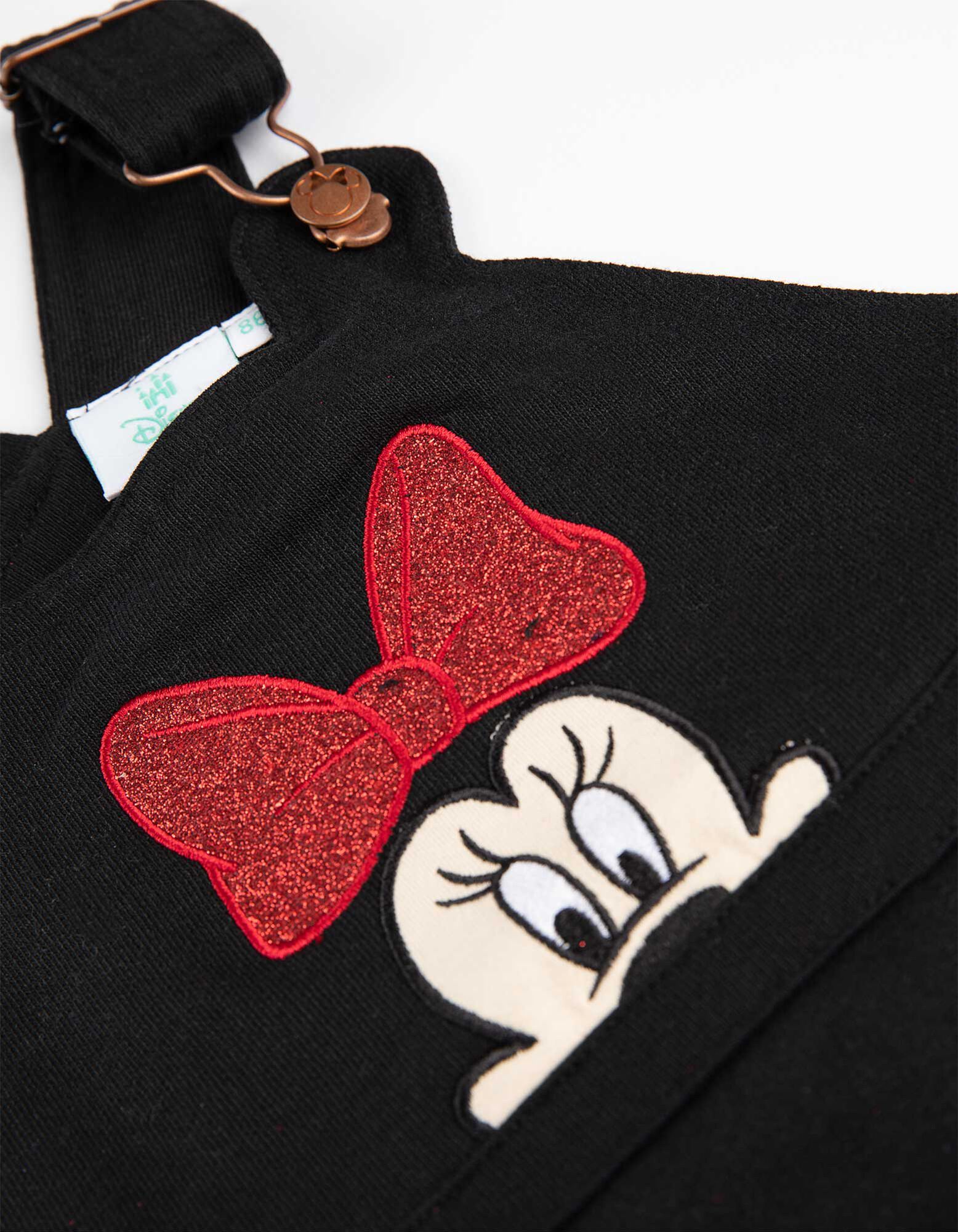 Marškinėlių ilgomis rankovėmis ir šliaužtinukų rinkinys - Pelytė Minė - juodas
