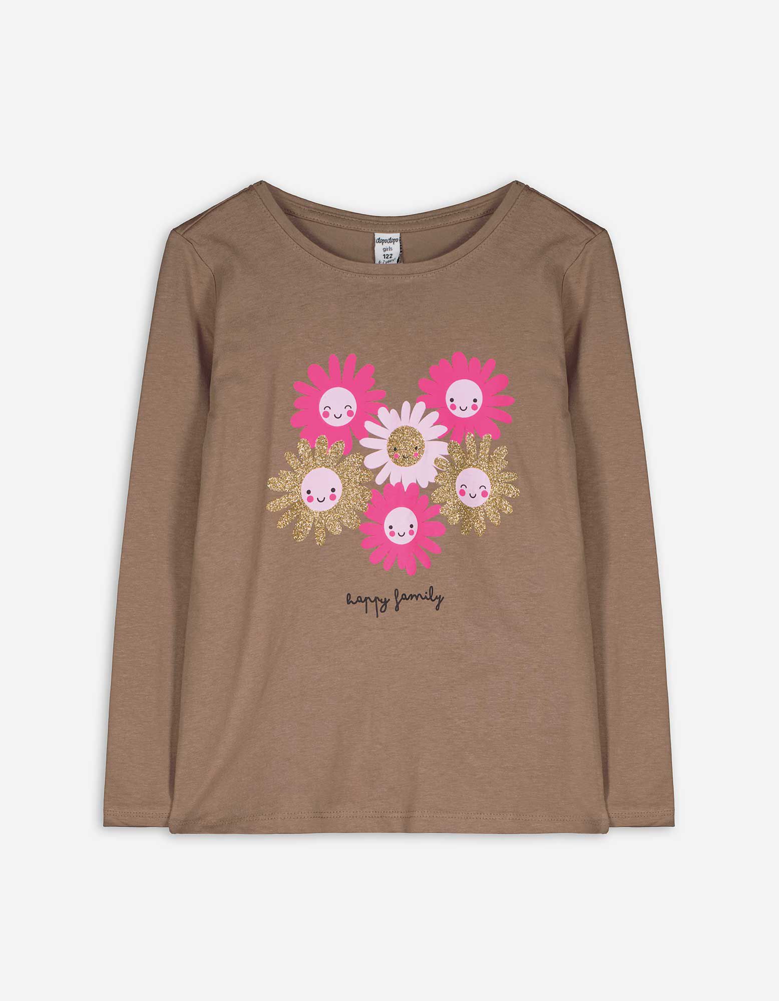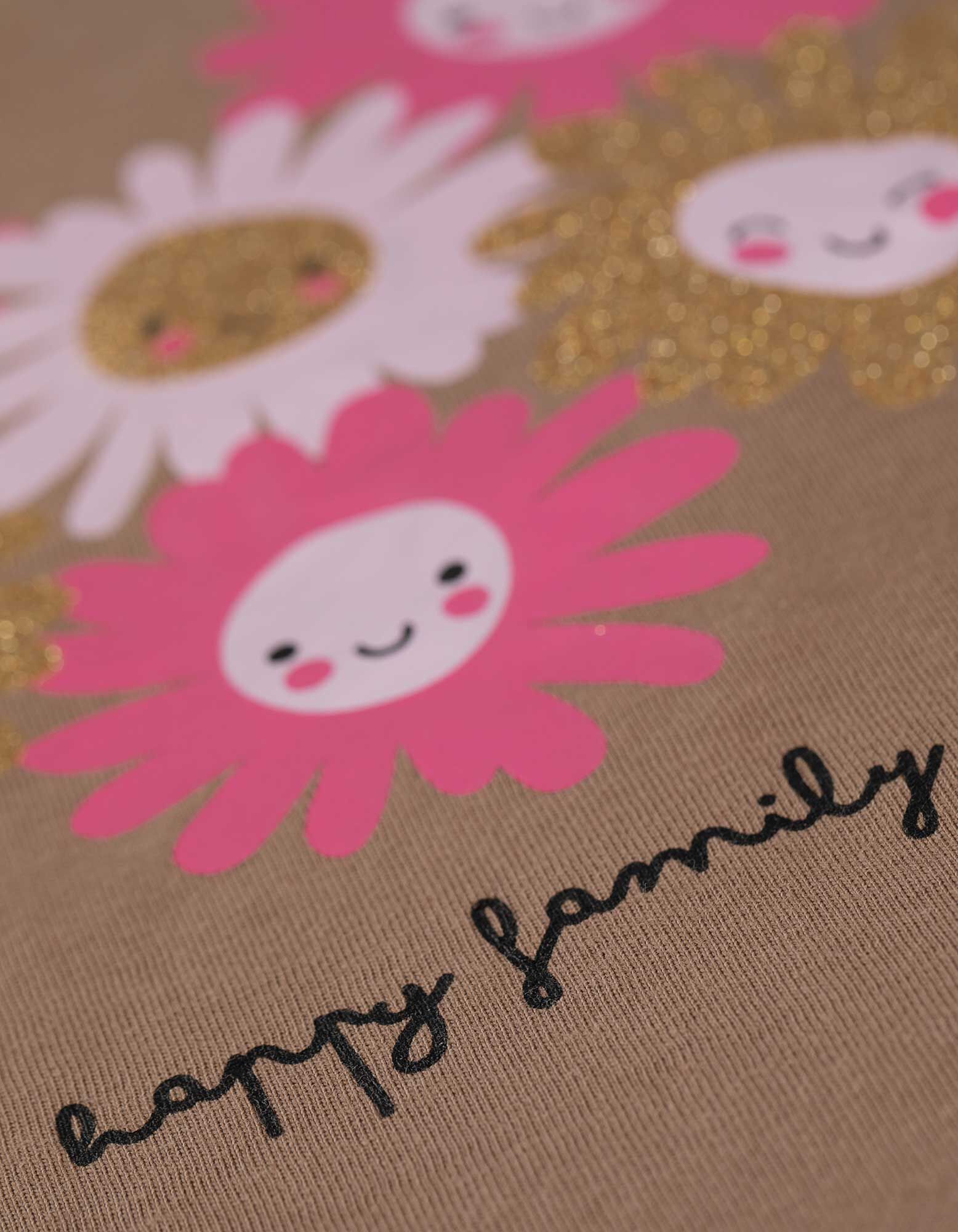 Marškinėliai ilgomis rankovėmis - Blizgus paveikslėlis - smelio spalvos