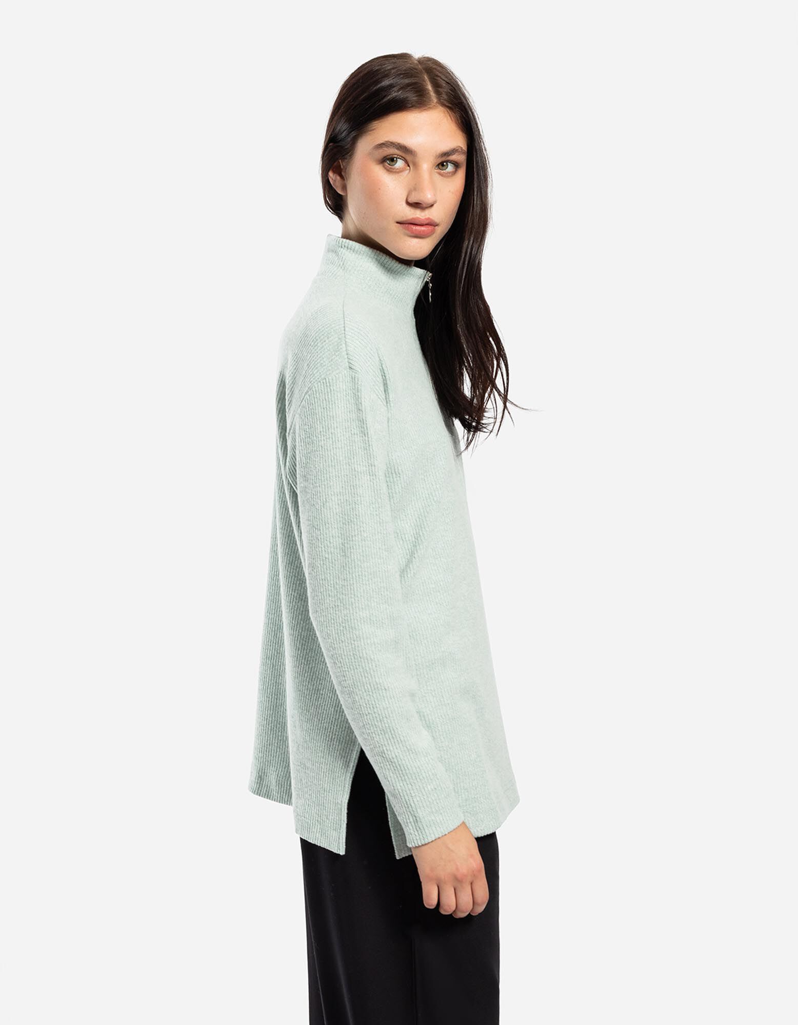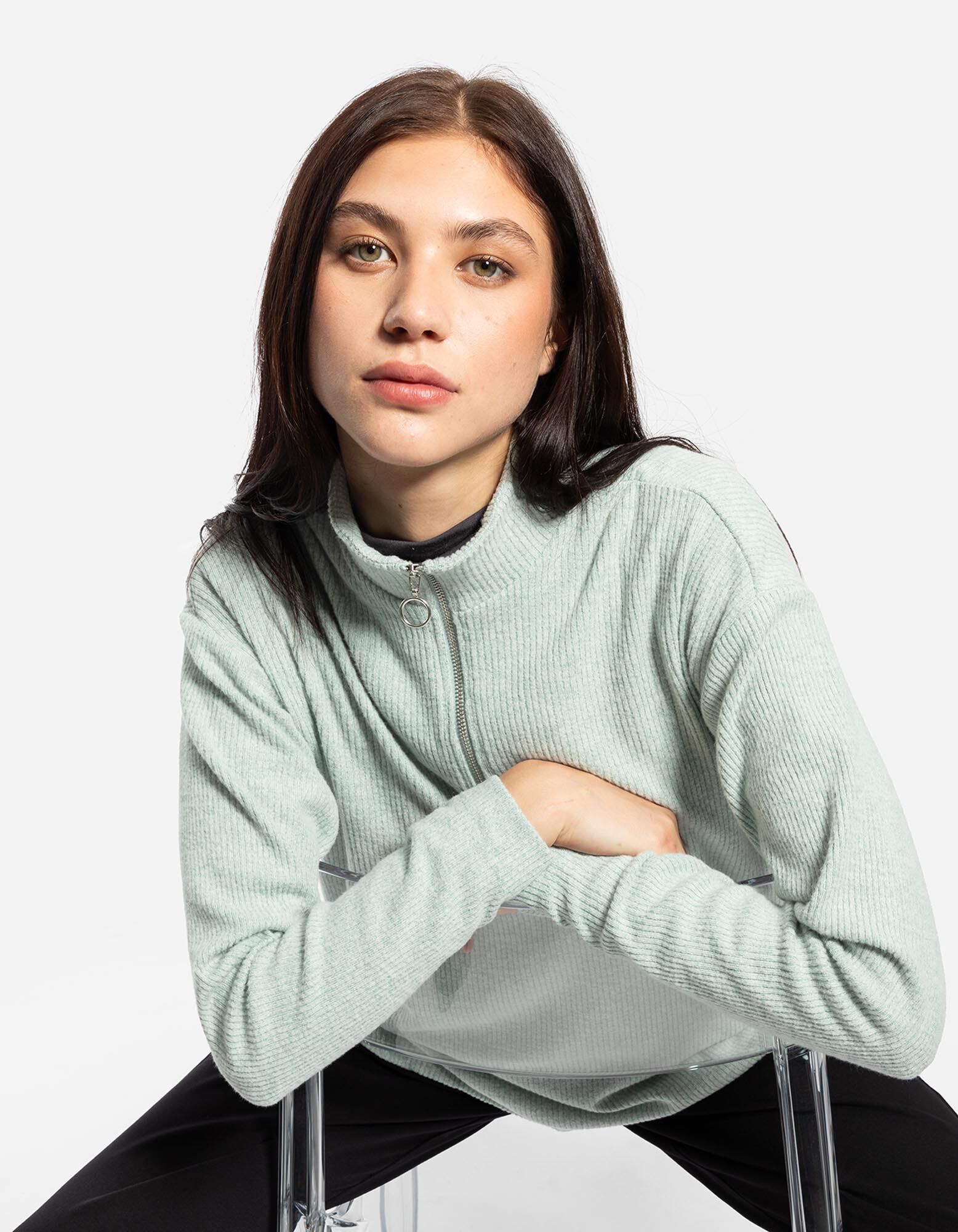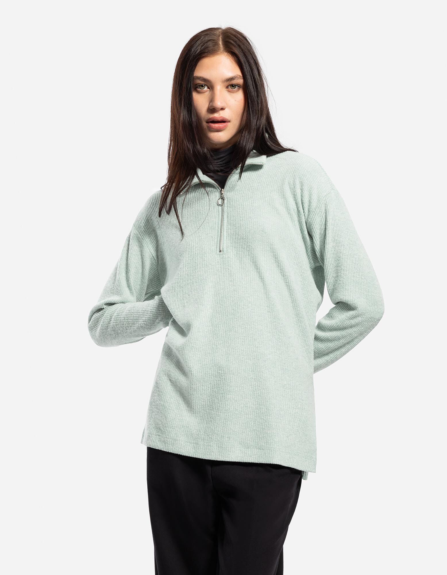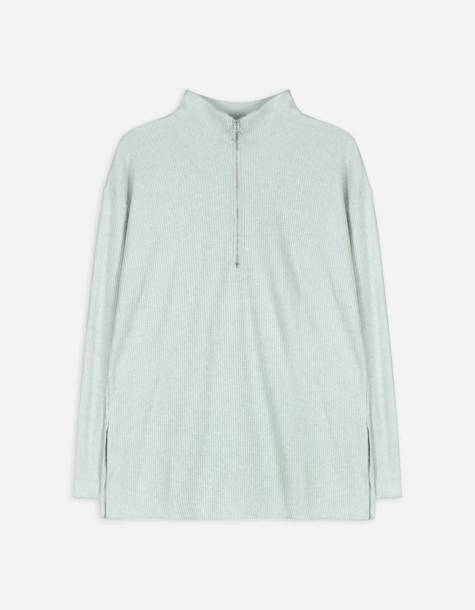 Marškinėliai ilgomis rankovėmis - Užtrauktukas - zalias