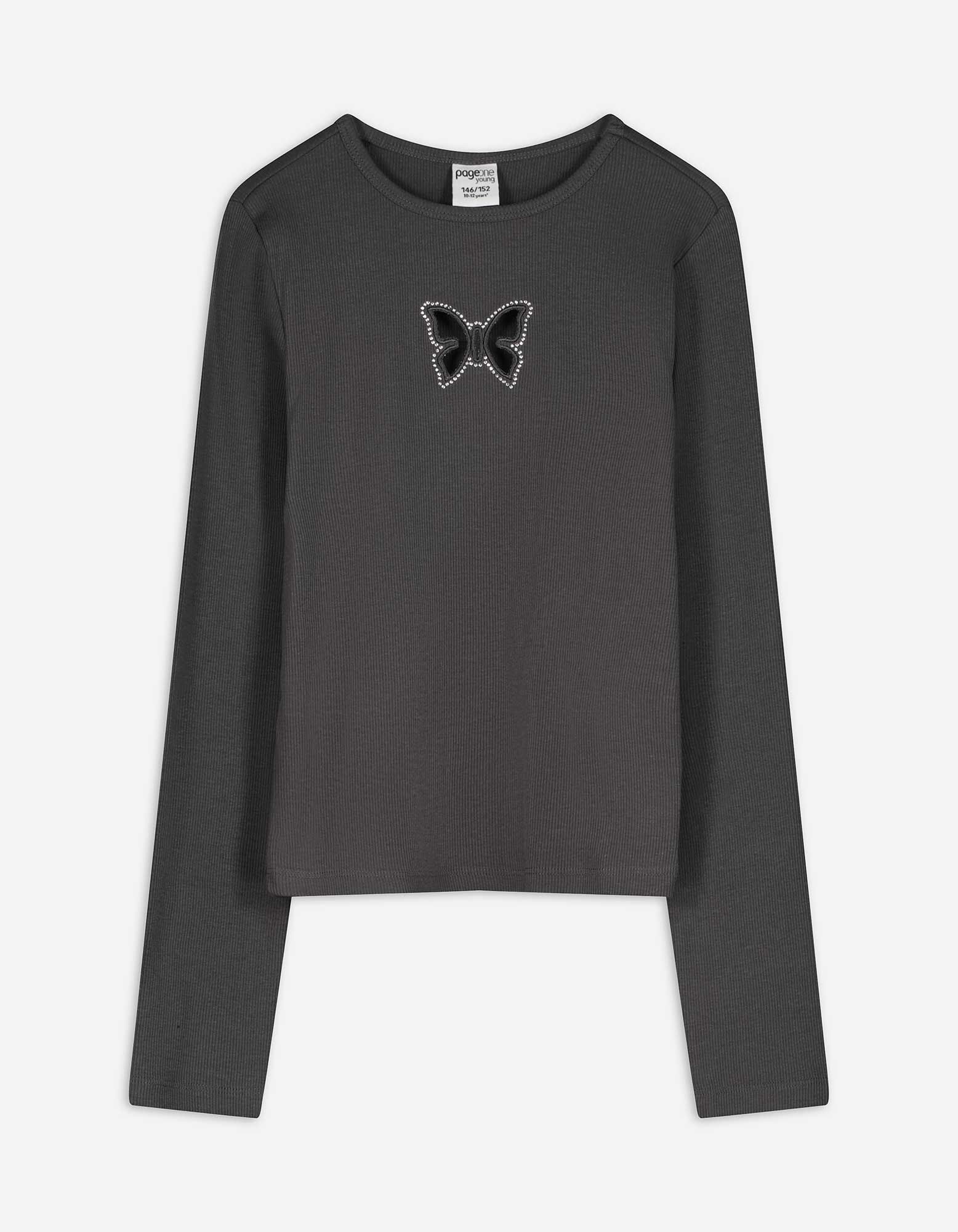 Marškinėliai ilgomis rankovėmis - Iškarpos - tamsiai pilkas