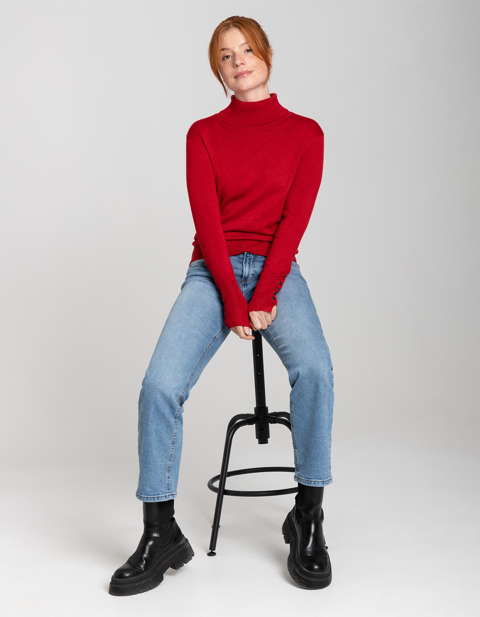 Aukštas kaklas - tamsiai raudonas