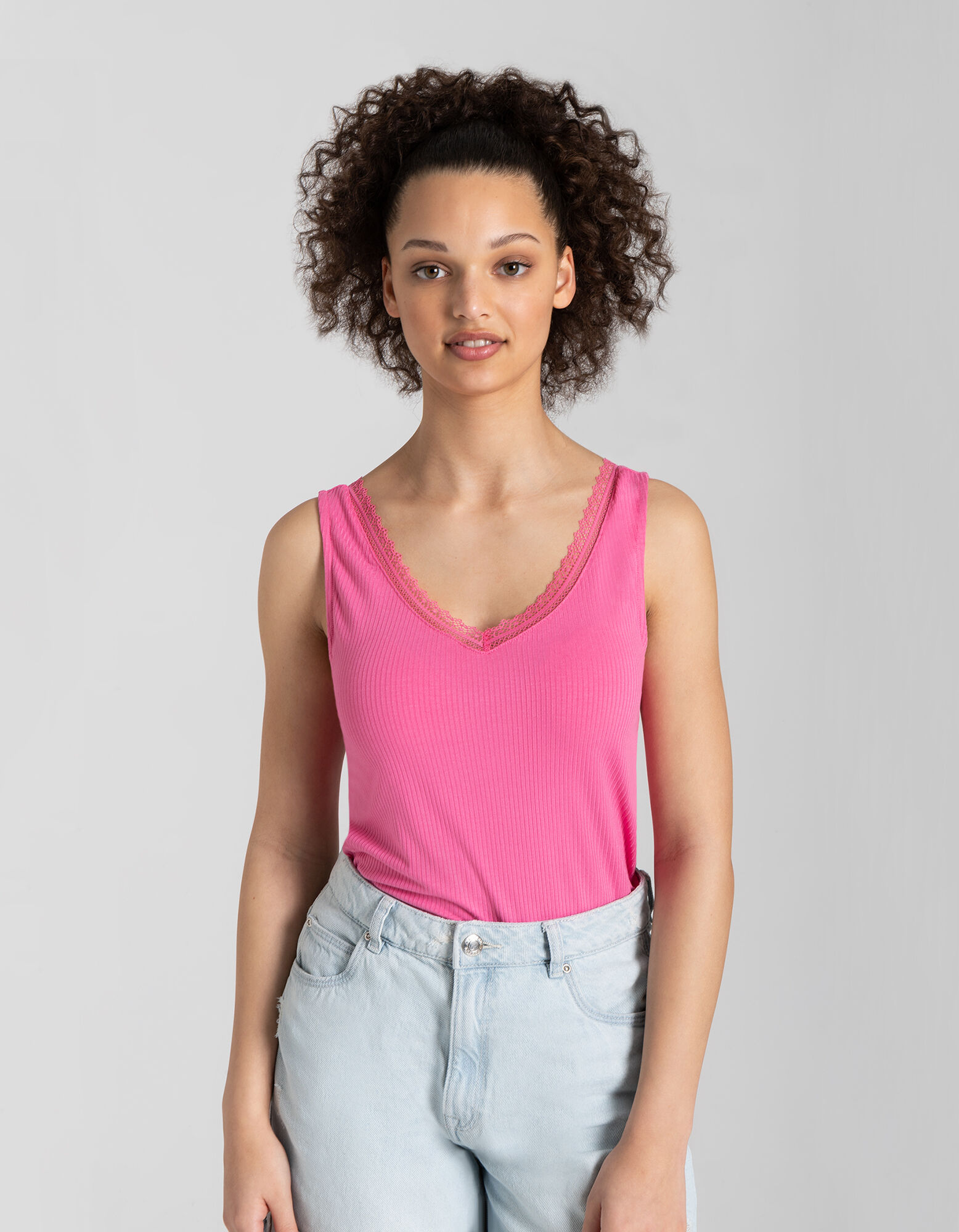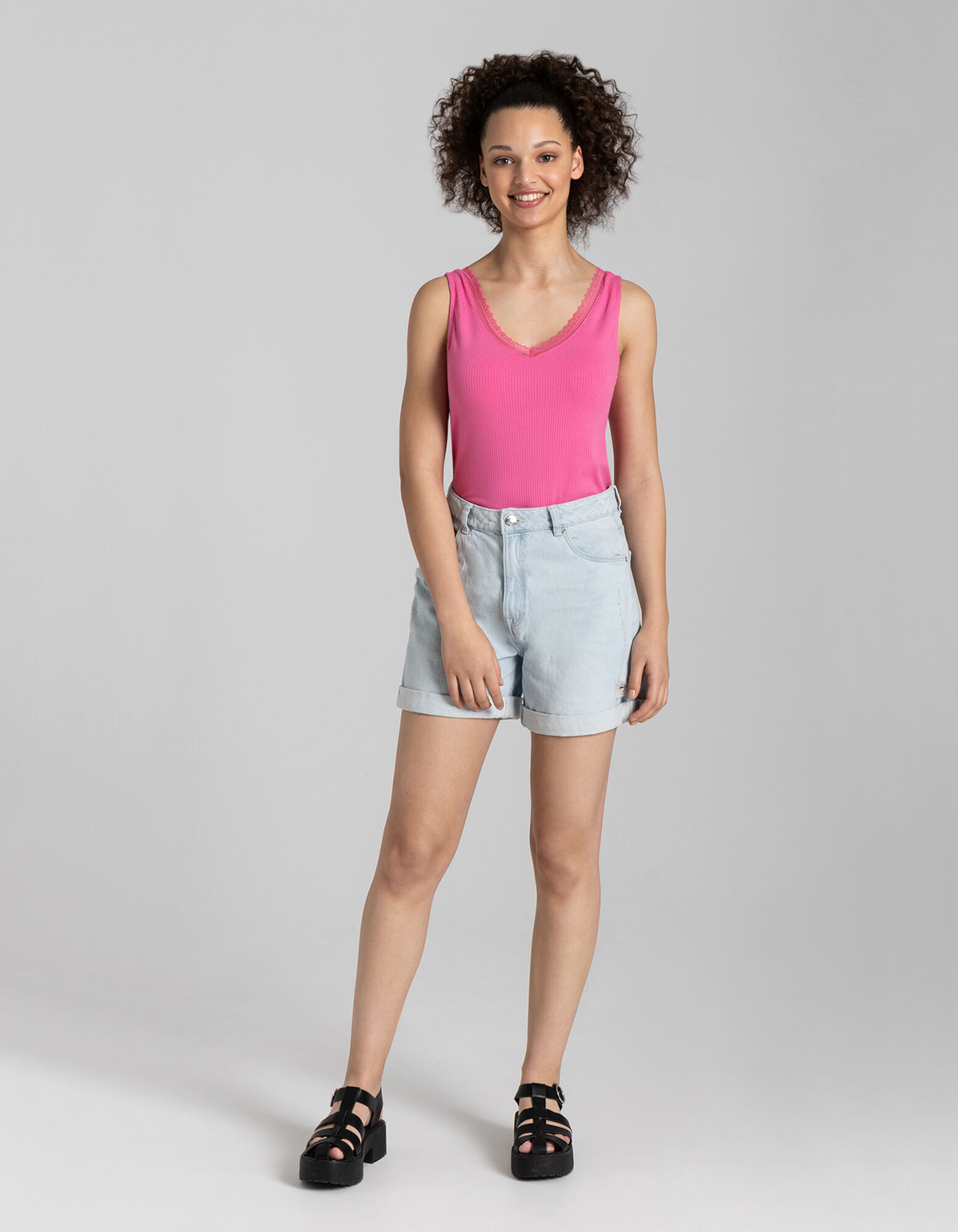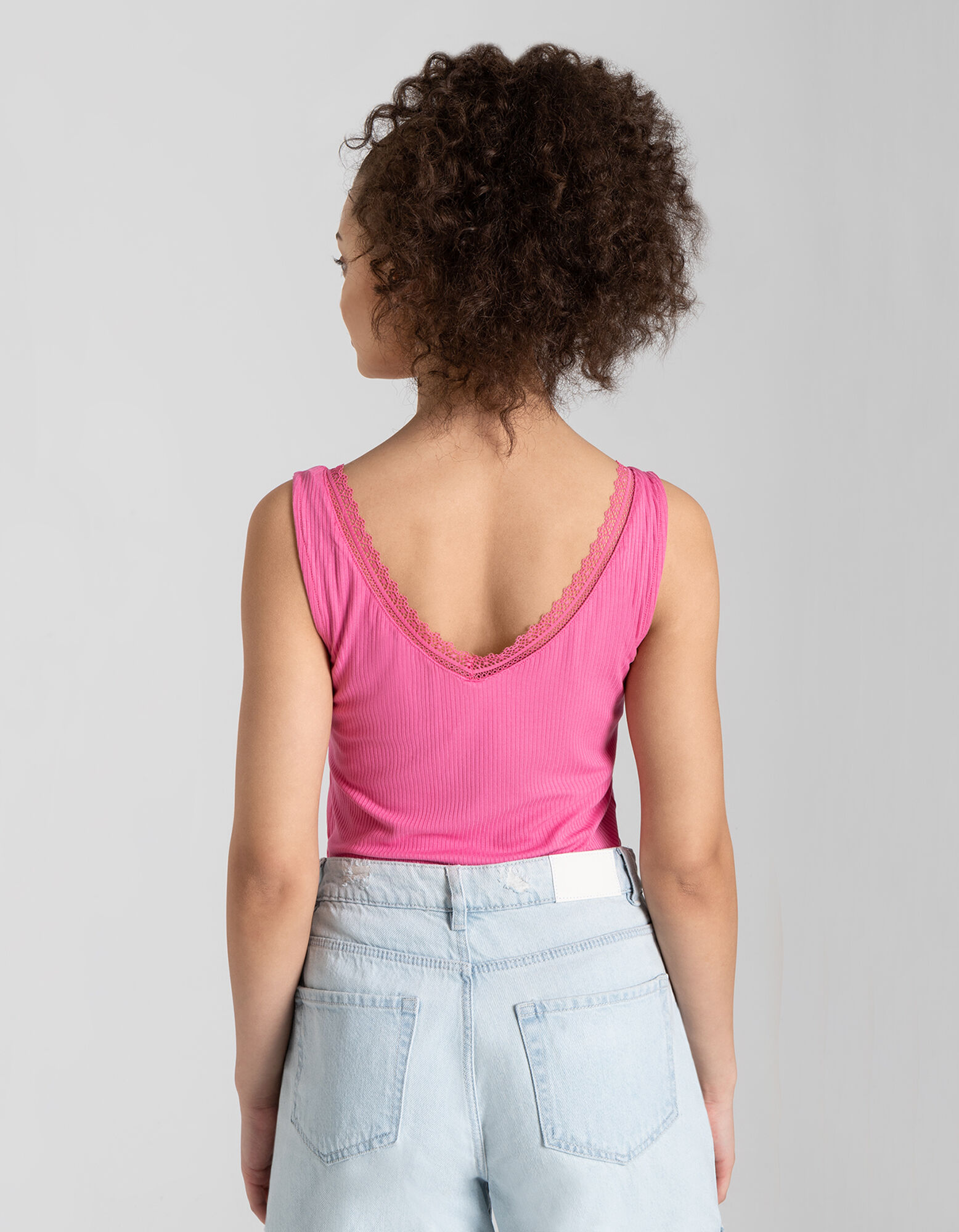 Trumpa palaidinė - Nėrinių apvadas - ryskiai rozinis